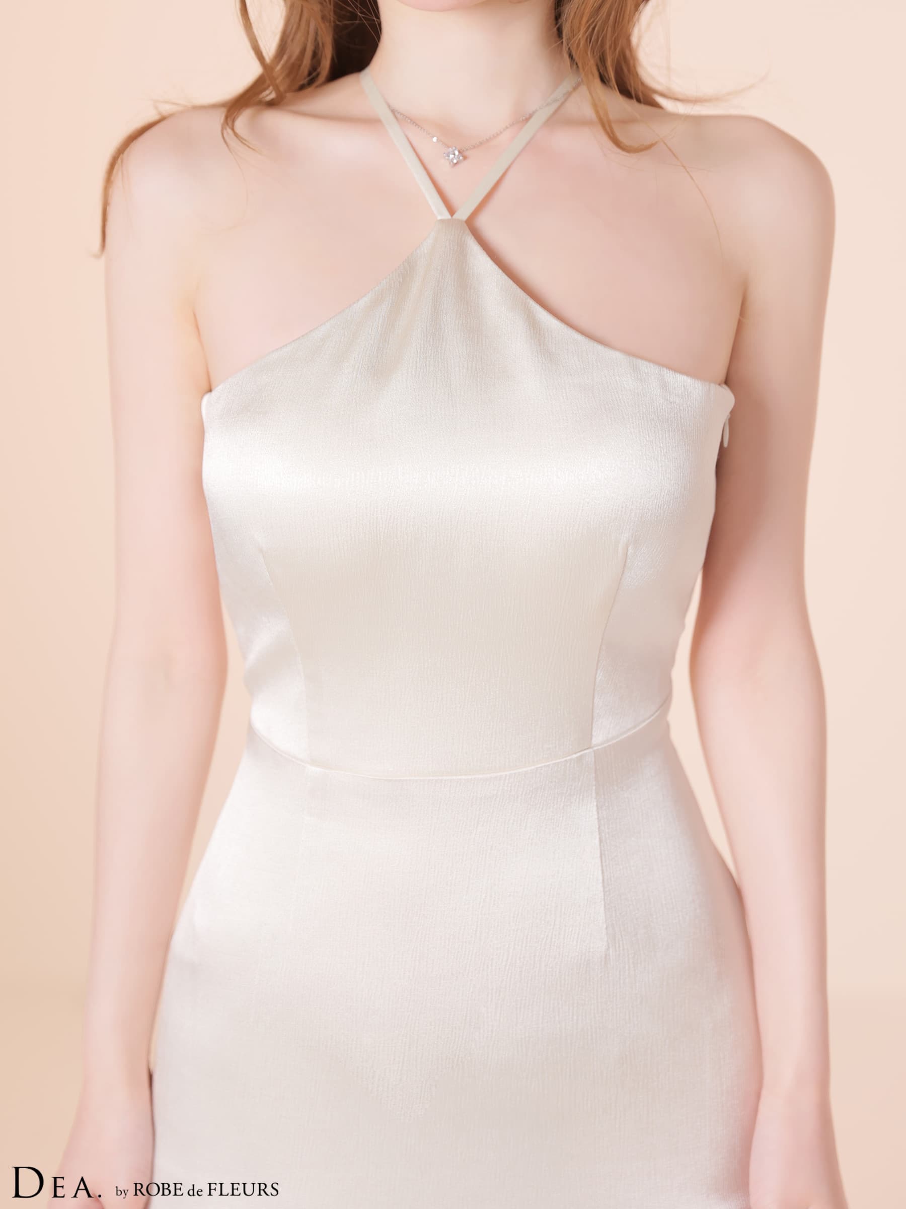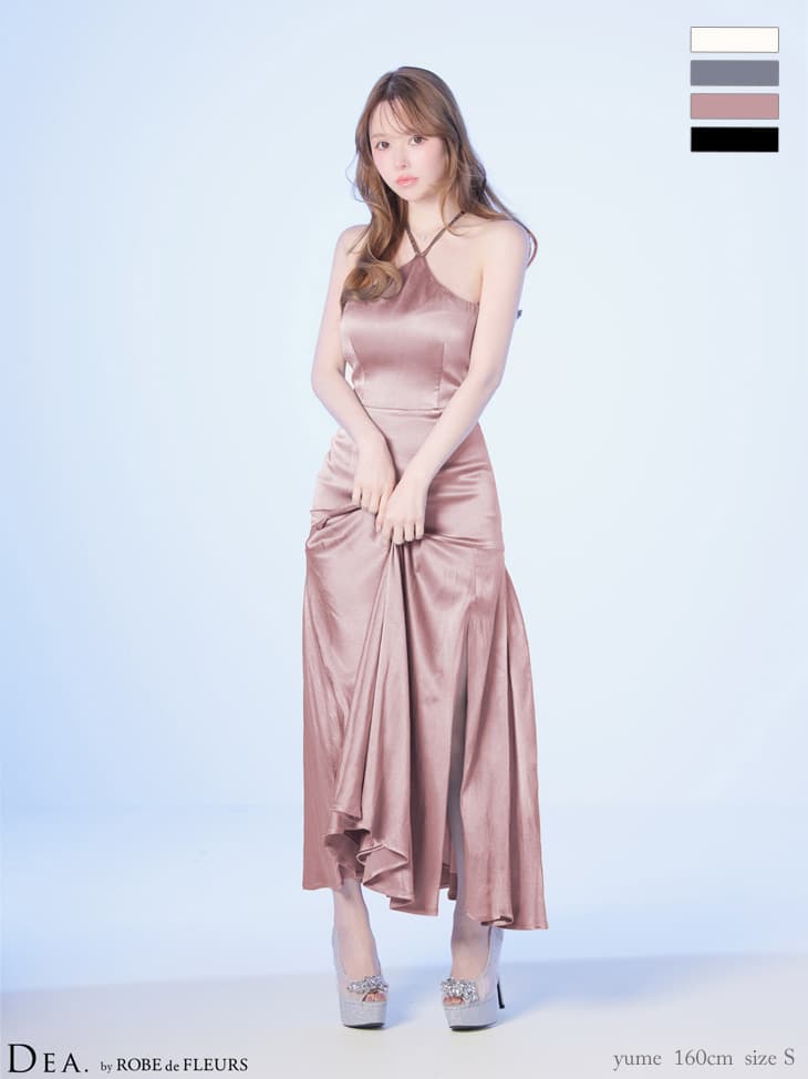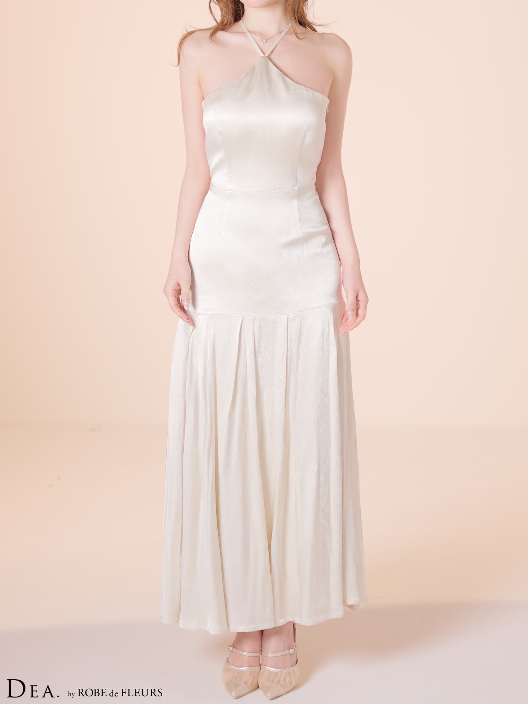 動くたびに光を取り込む艶やかな質感のロングワンピ。