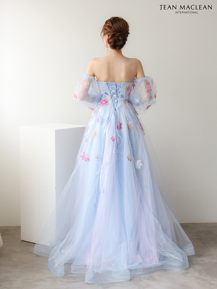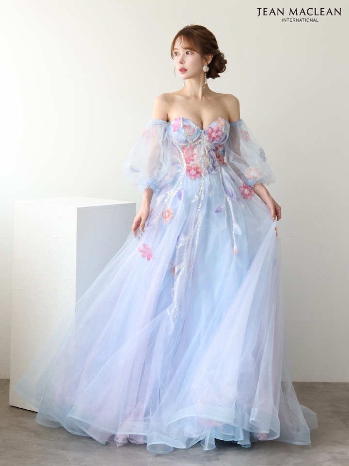 【JEAN MACLEAN/ジャンマクレーン】 2way/ 長袖/ パフスリーブ/ ベア/ ネット/ レース/ ビジュー/ 花柄/ フレア/ プリンセス/ ロングドレス/ キャバドレス long[OF2A] [61065-JM-BL-2602]