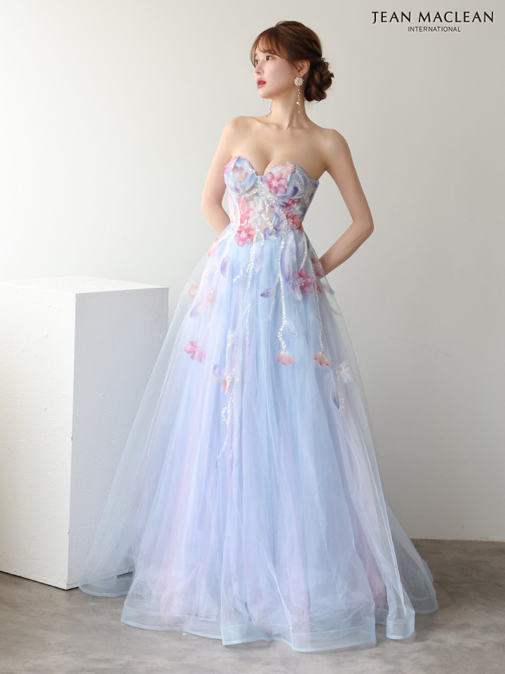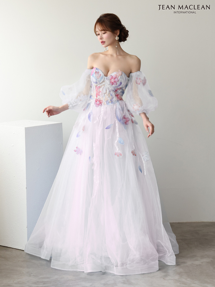花柄×ビジューで立体的に彩ったプリンセスロングドレス♡