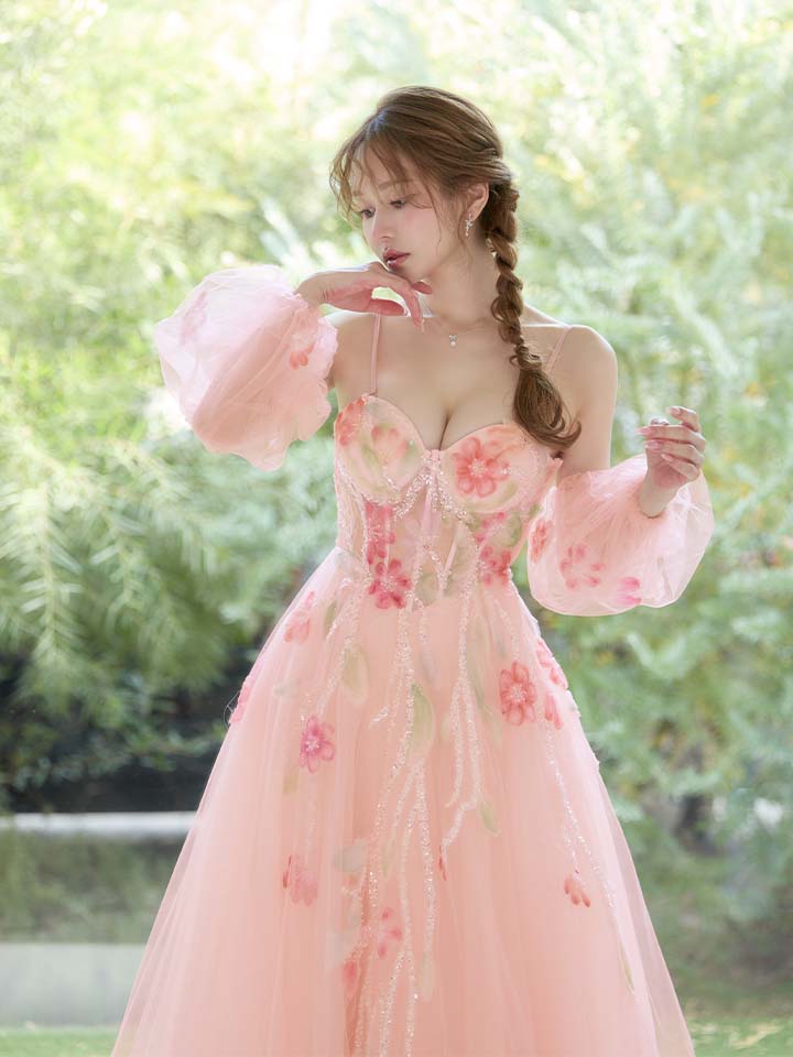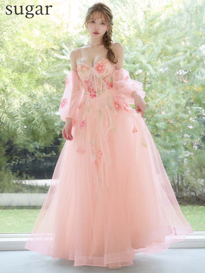 花柄×ビジューで立体的に彩ったプリンセスロングドレス♡