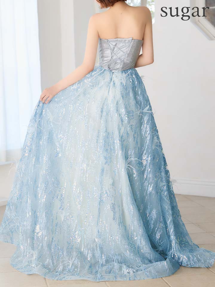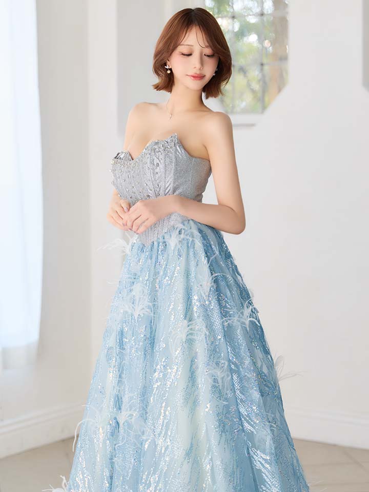 【couture an/クチュールアン】ベア/ フェザー/ ビジュー/ グリッター/ スパンコール/ チュール/ フレア/ プリンセス/ ロングドレス/ キャバドレス long[OF05] [AOC-WD-055-BL-S260228]