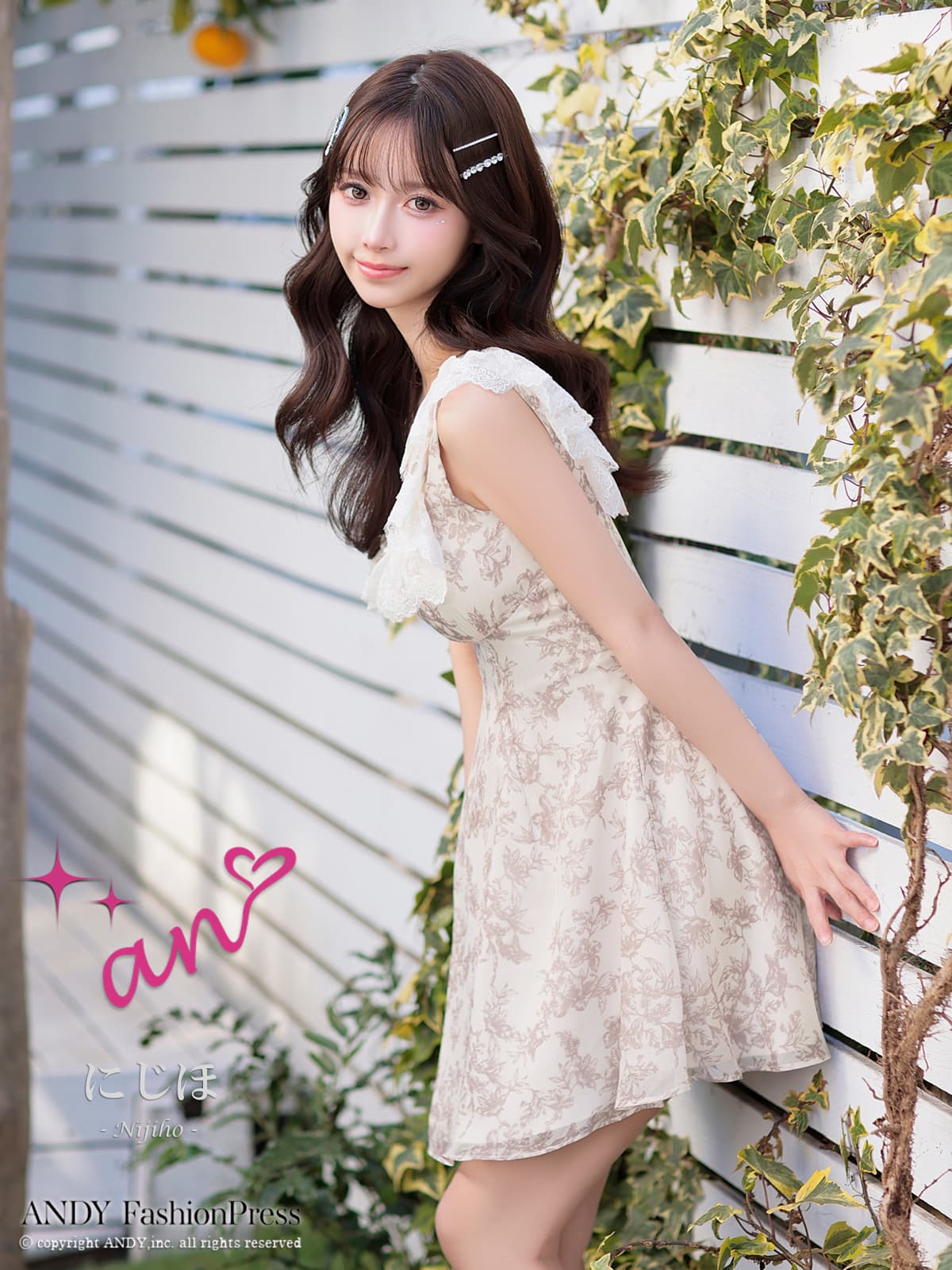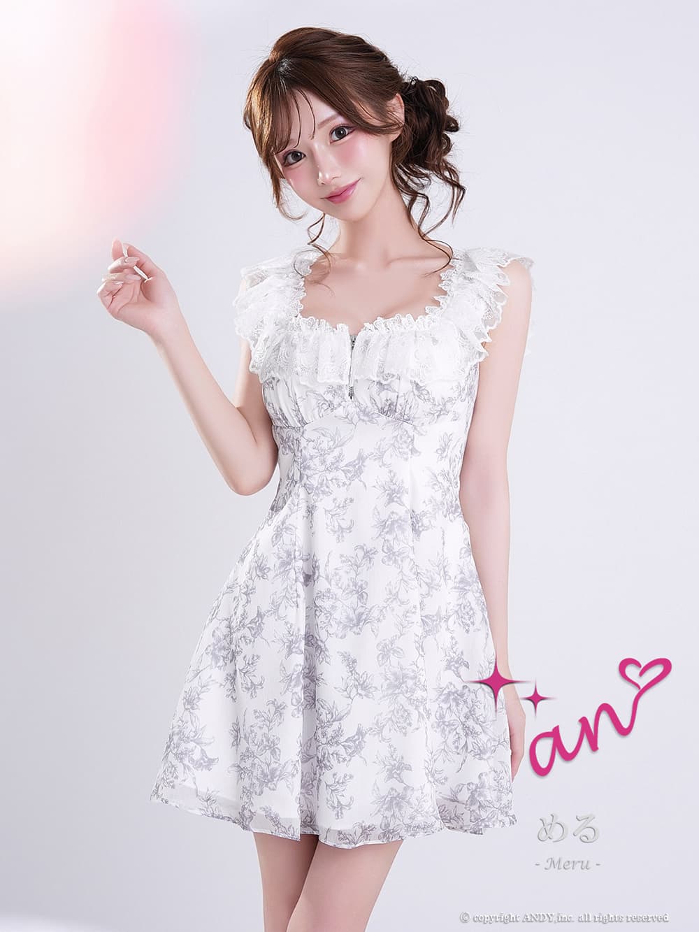 XSサイズあり【an/アン】スクエアネック/ フリルレース/ バストジップ/ フラワープリント/ ノースリーブ/ ハイウエスト/ 総柄/ フレア/ ミニドレス/ キャバドレス[OF05] [AOC4084-WxGY-2603]