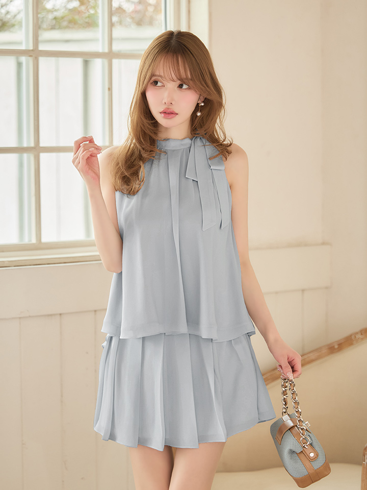 XSサイズあり【DEA./ディア】サテン/ シフォン/ フレア/ セットアップ/ ミニドレス/ キャバドレス[OF08]【一部予約商品/3月上旬発送予定】 [DE3372-powderBL-S260302]
