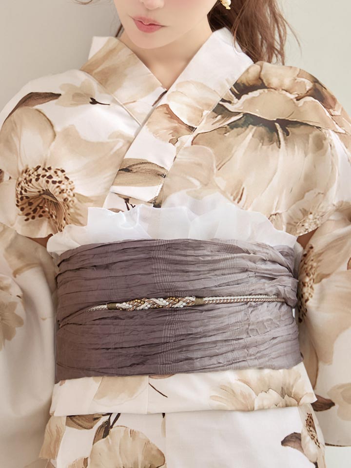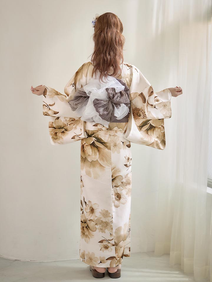 【即日発送】ホワイトエレガントフラワー浴衣【浴衣3点セット 浴衣/帯/下駄】[OF04] [Y-9373-sb-dzjm-W-F-26MY-260304]