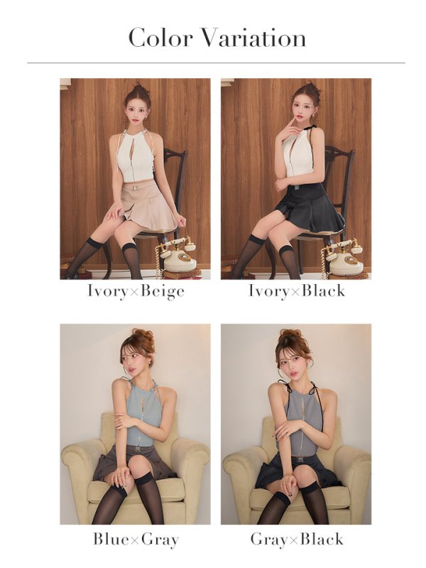 | XSサイズ | バスト約79cm ウエスト約55〜62cm ヒップFREE 着丈(トップス)脇下約17cm(スカート)約31cm |