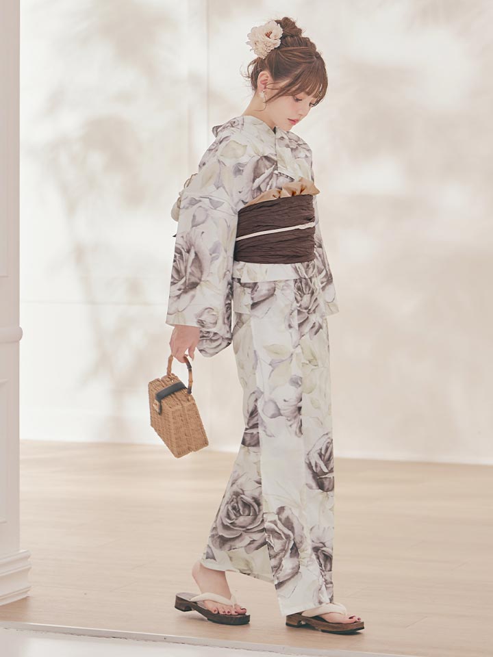 送料無料!エクリュアンティークローズ浴衣【浴衣3点セット 浴衣/帯/下駄】[OF04]【予約 / 4月上旬発送予定】 [Y-9303-kj-BR-F-26PO-260305]