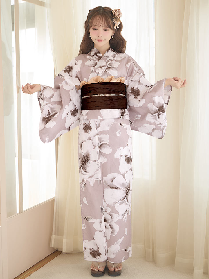 【即日発送】モカブラウンアンティークブーケ浴衣【浴衣3点セット 浴衣/帯/下駄】[OF04] [Y-9305-kj-BR-F-26PO-260305]
