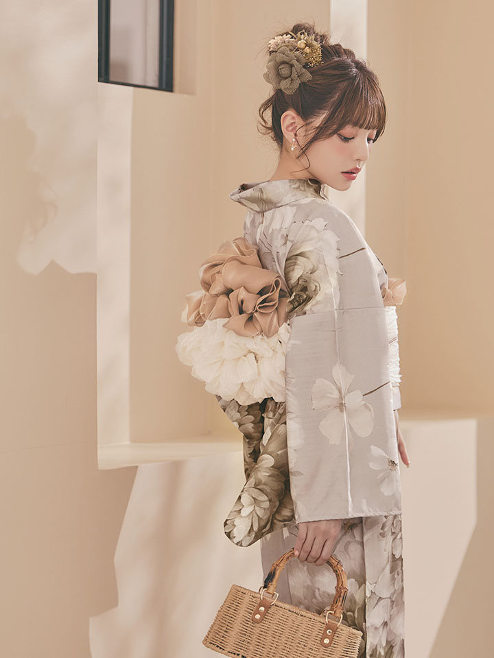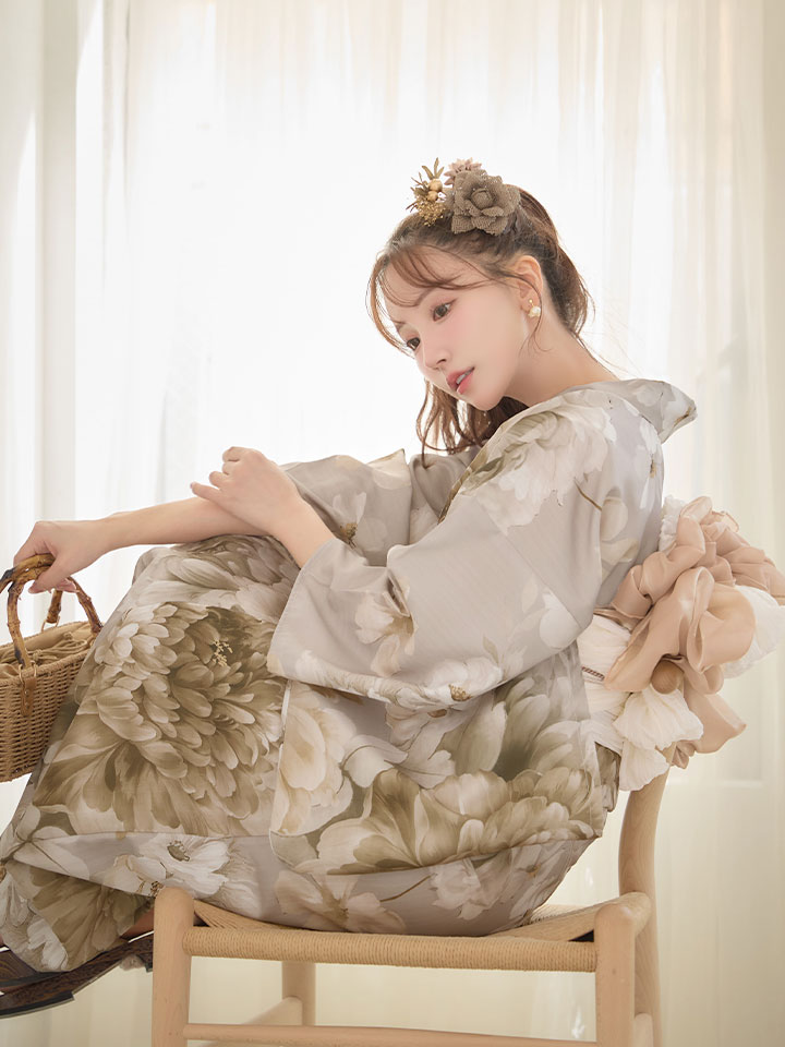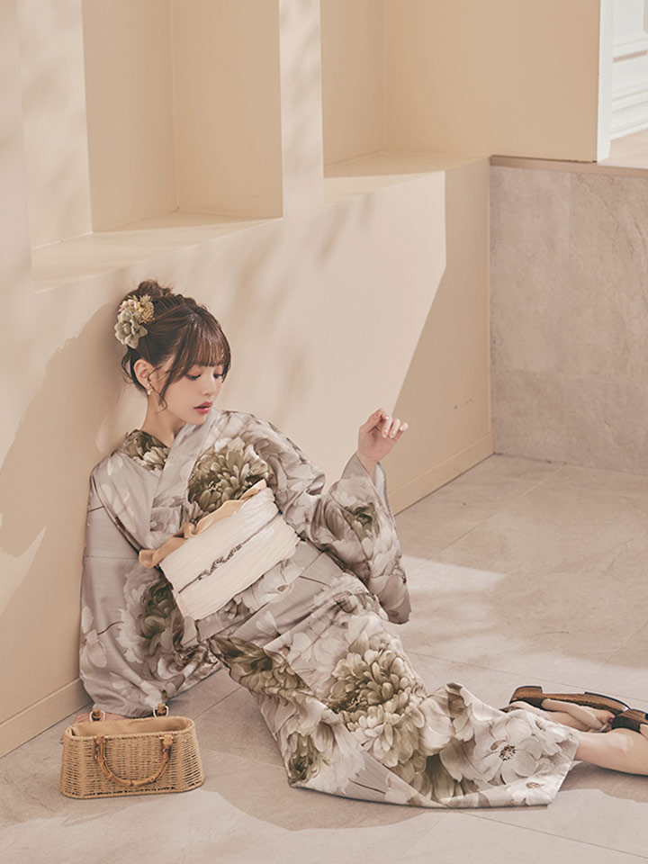 送料無料!ニュアンスブラウン浴衣【浴衣3点セット 浴衣/帯/下駄】[OF04]【予約 / 4月上旬発送予定】 [Y-9354-nz-dzm-BR-F-26PO-260305]