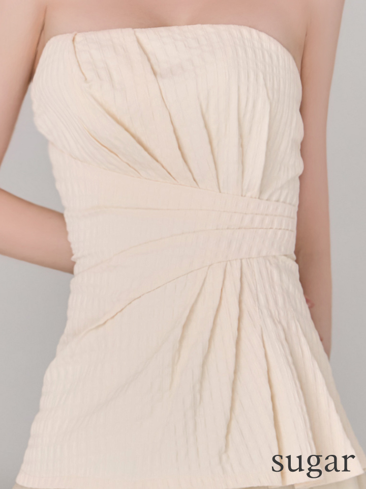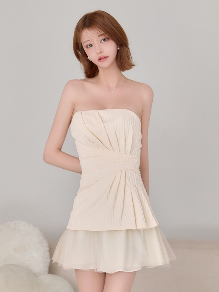 【予約商品/3月下旬-4月上旬発送予定】XSサイズあり【ANGEL R/エンジェルアール】ベアトップ/ ウエストタック/ シフォン/ フリル/ フレア/ マイクロミニドレス/ キャバドレス[OF2] [AR26314-IV-S260306]
