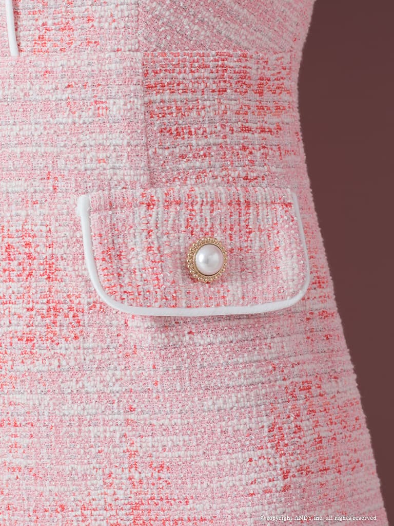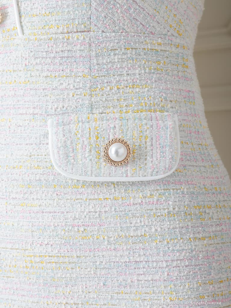 【an /アン】ラメ/ ツイード/ パイピング/ スクエアネック/ ビジューボタン/ ストレッチ/ ハーフスリーブ/ 袖あり/ タイト/ ミニドレス/ キャバドレス[OF05] [AOC3870-P-2603]