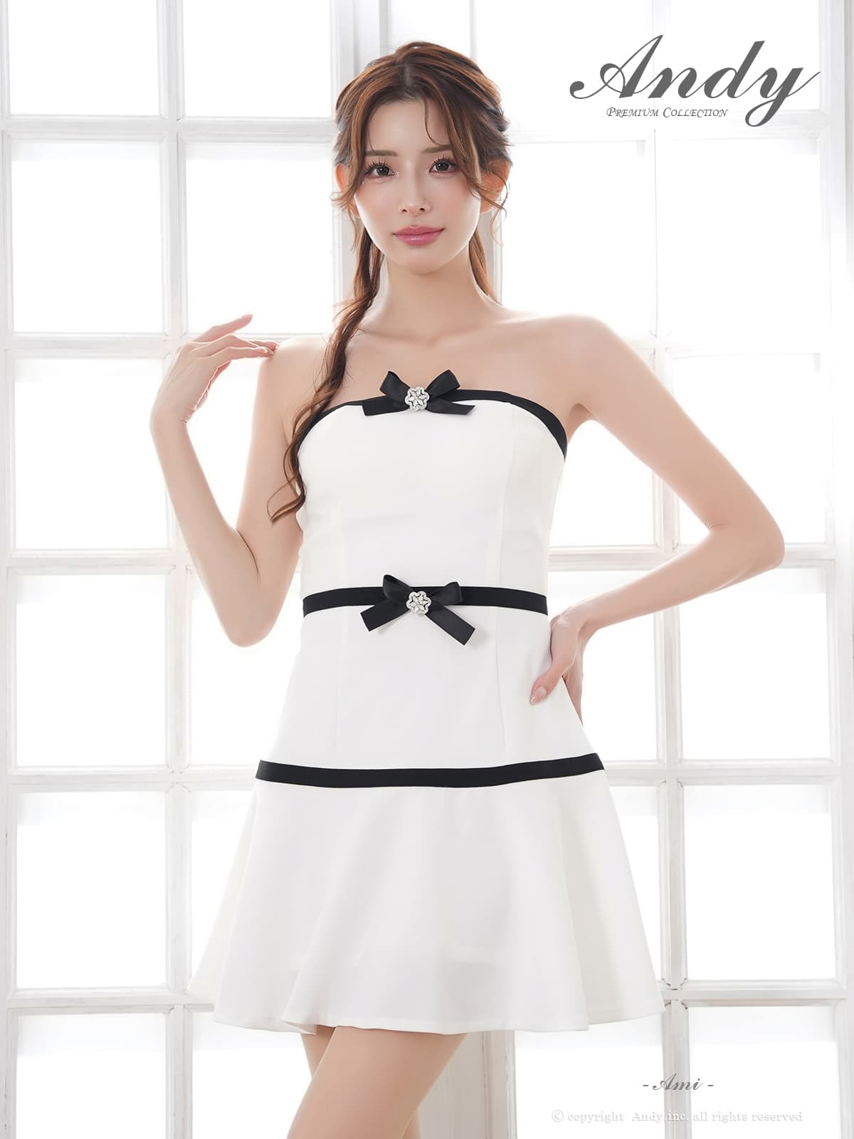 【ANDY/アンディ】デコルテを大胆に魅せたベアデザインがセクシーなミニドレス。
