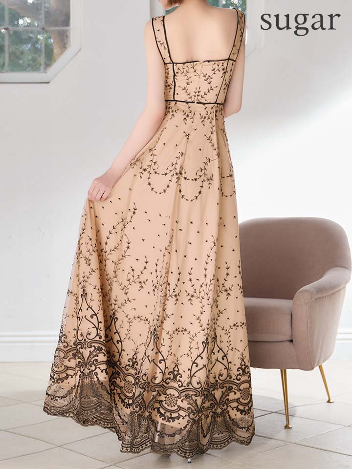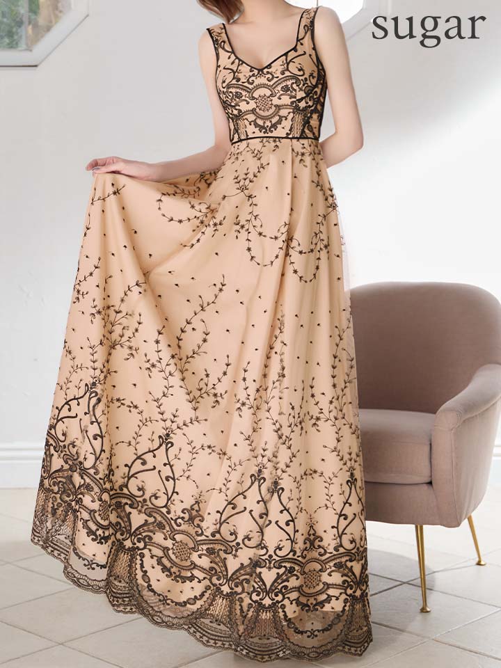 チュールに施されたクラシカル柄がエレガントなAラインロングドレス♡