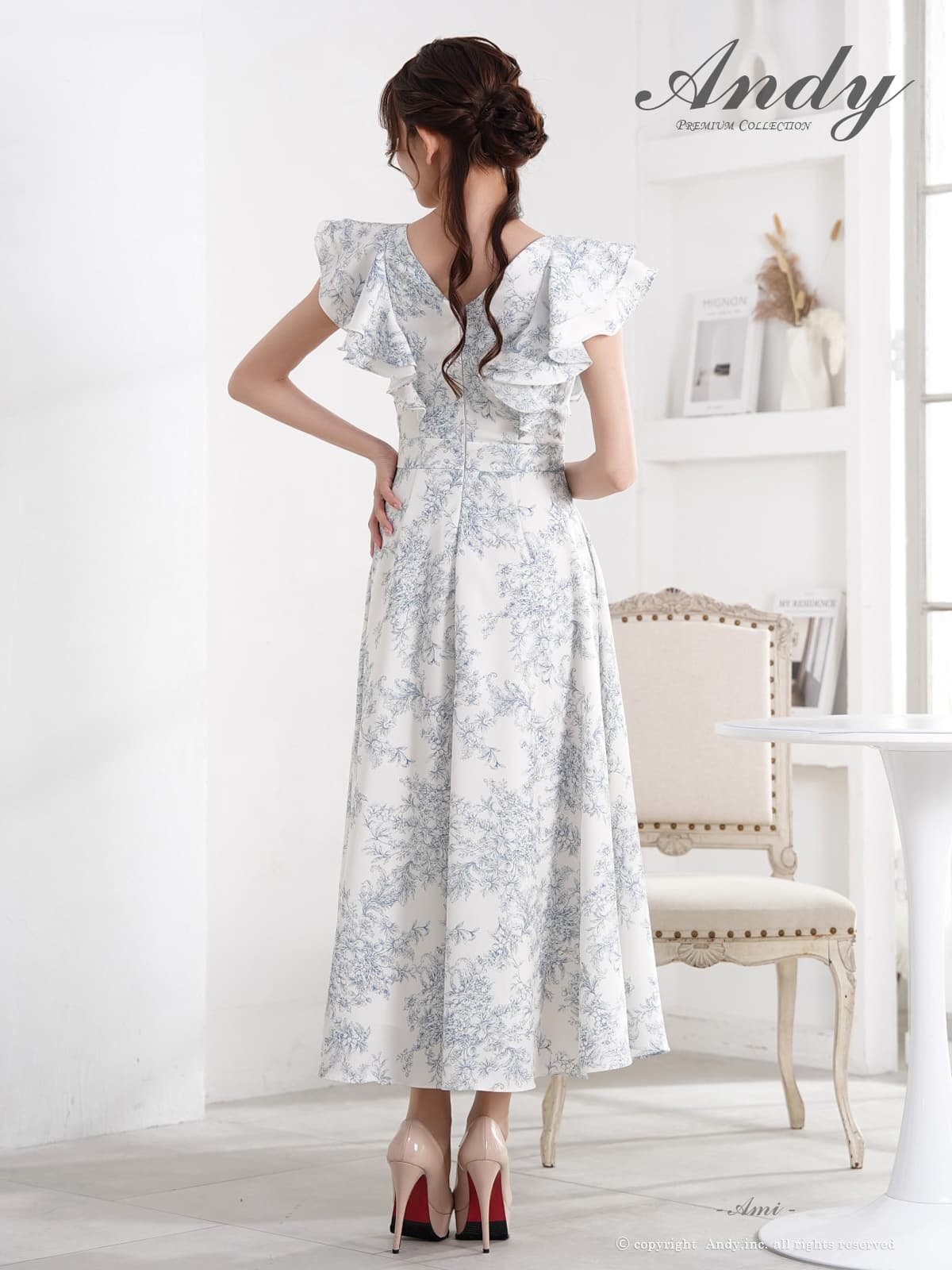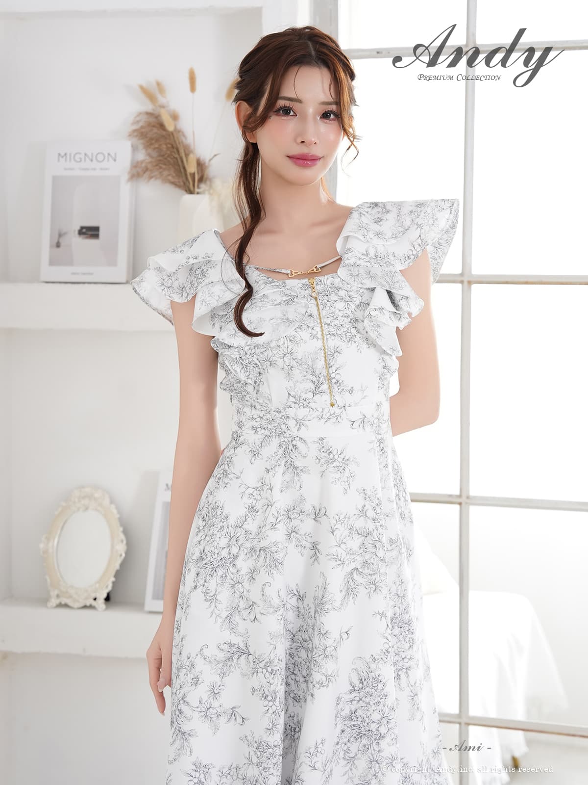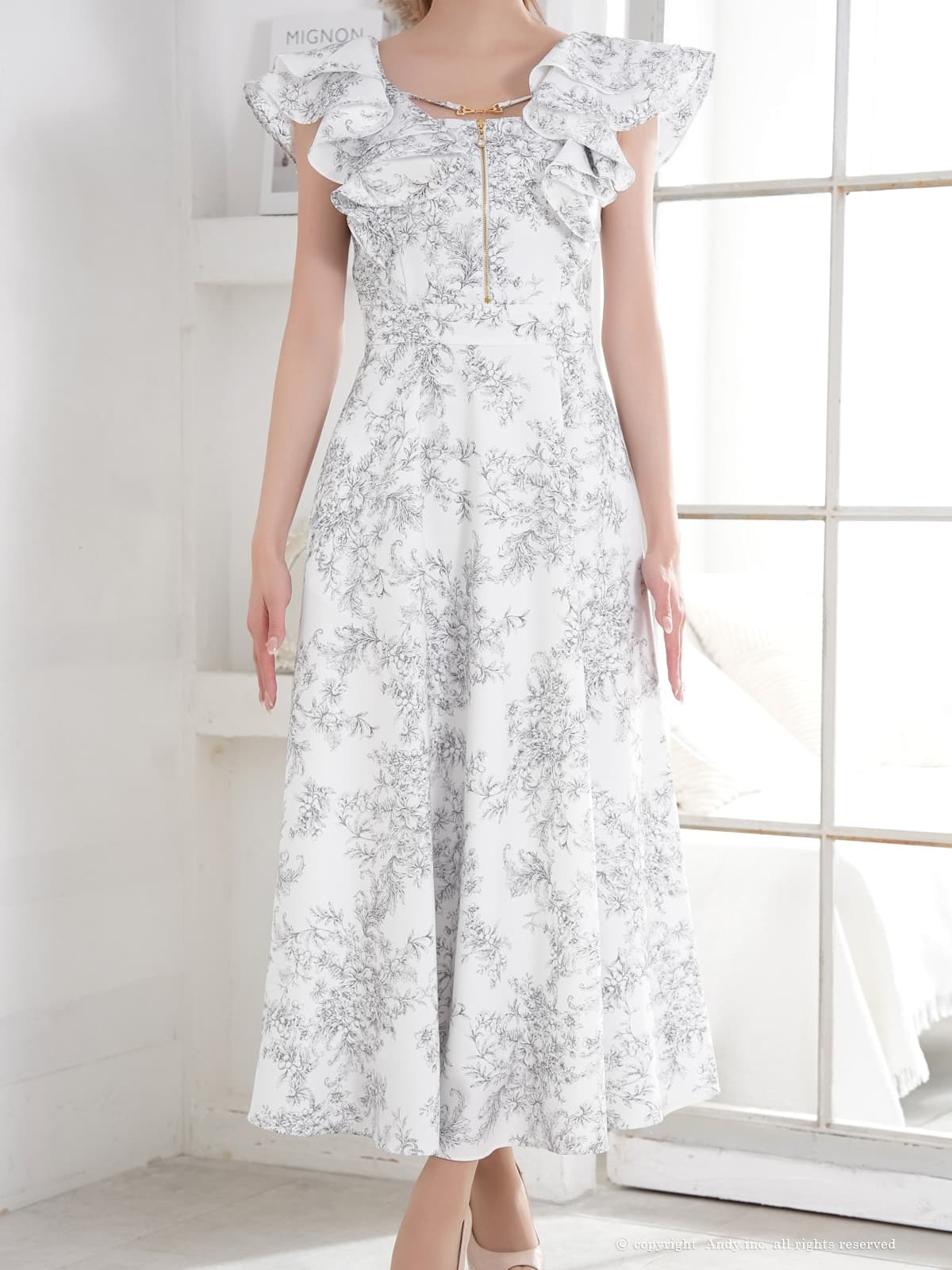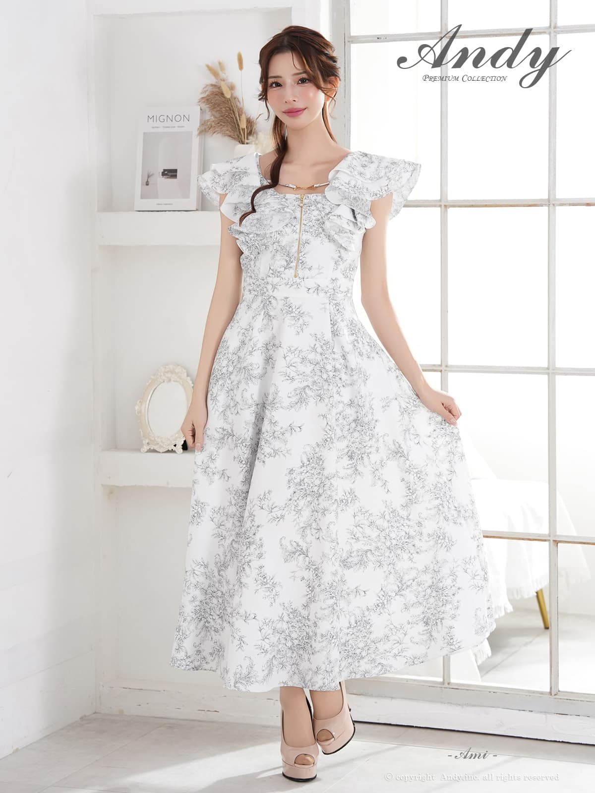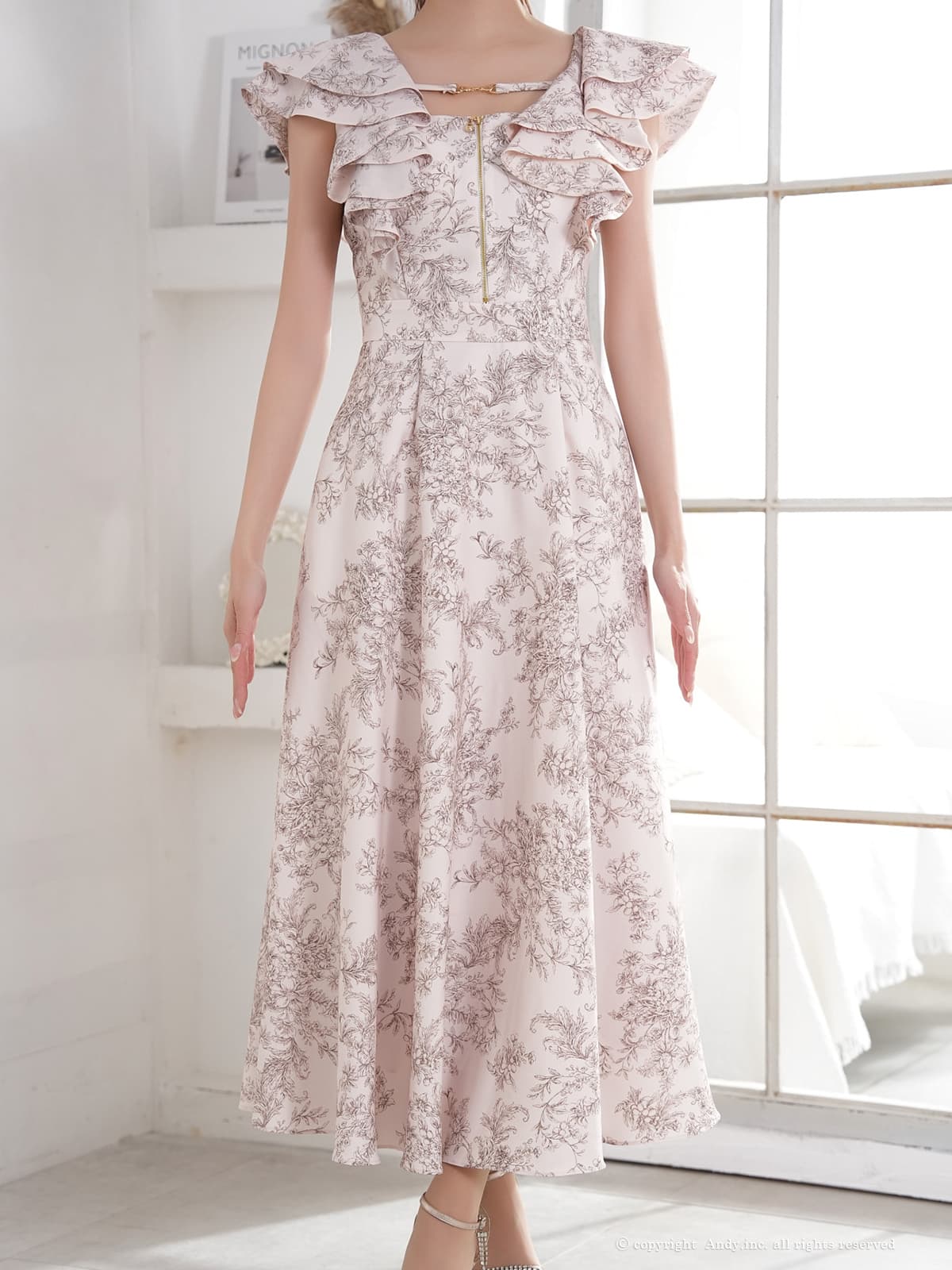 【予約商品/3月上旬-3月中旬発送予定】XSサイズあり【ANDY/アンディ】花柄/ フリル/ バストジップ/ ハーフスリーブ/ 袖あり/ マキシ丈/ フレア/ ワンピース/ ミディアムドレス/ キャバドレス[OF05] [ON3063-PxBR-S260311]