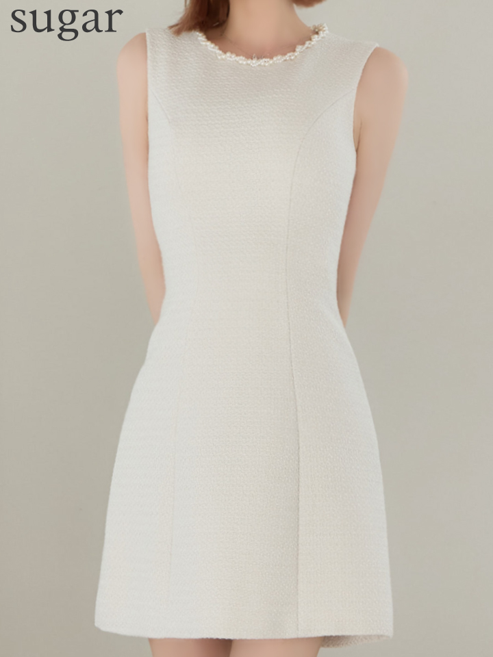 XS-Lサイズあり 【GINZA COUTURE/銀座クチュール】ツイード/ ノースリーブ/ シンプル/ フレア/ Aライン/ ミニドレス/ キャバドレス[OF2] [LKC25343-WR-S2603]