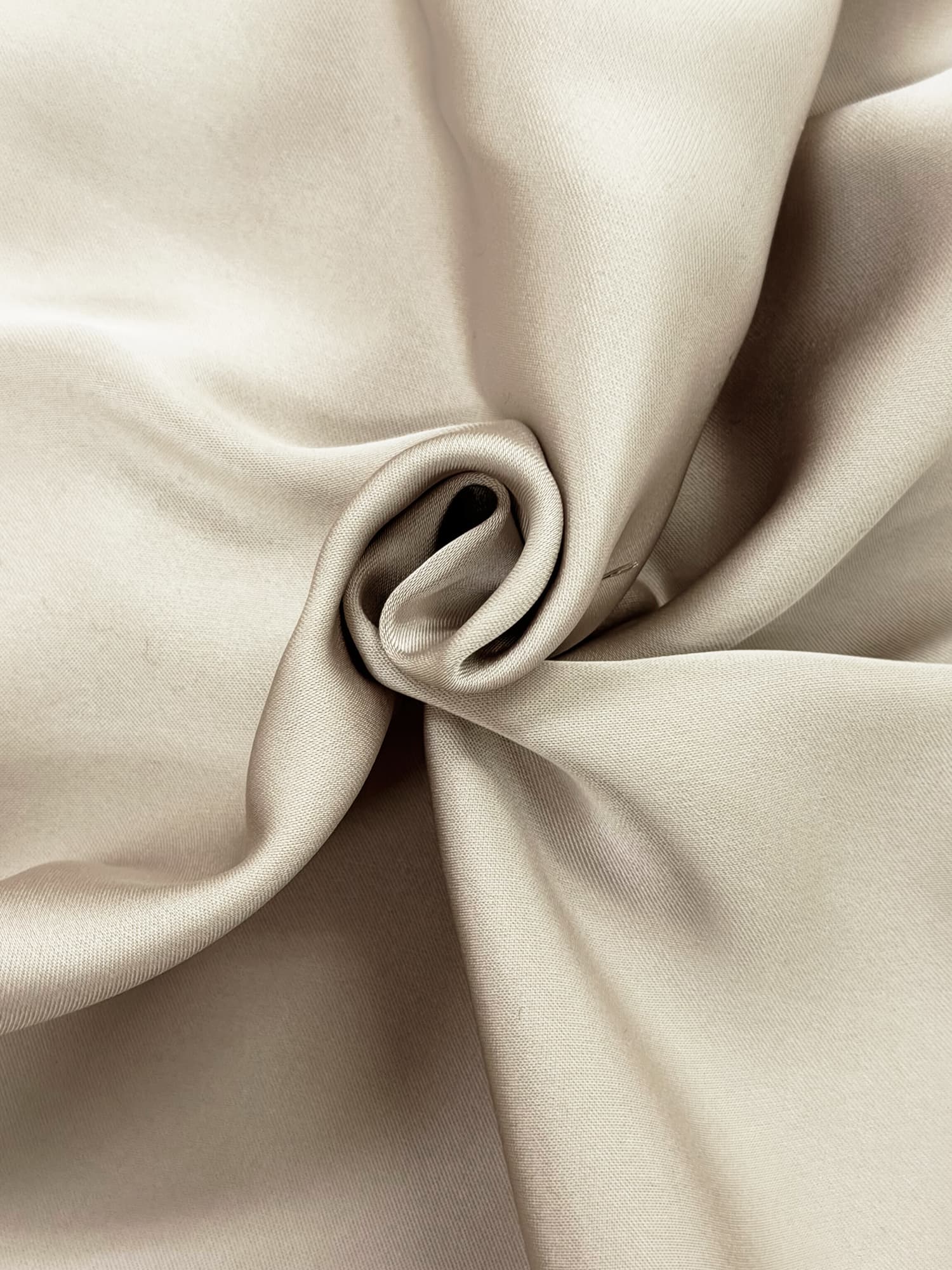 上品な光沢を放つドレープサテンを使用し、斜めに入ったタックデザインが立体感のあるシルエットを演出。