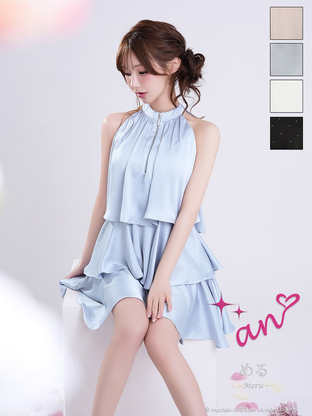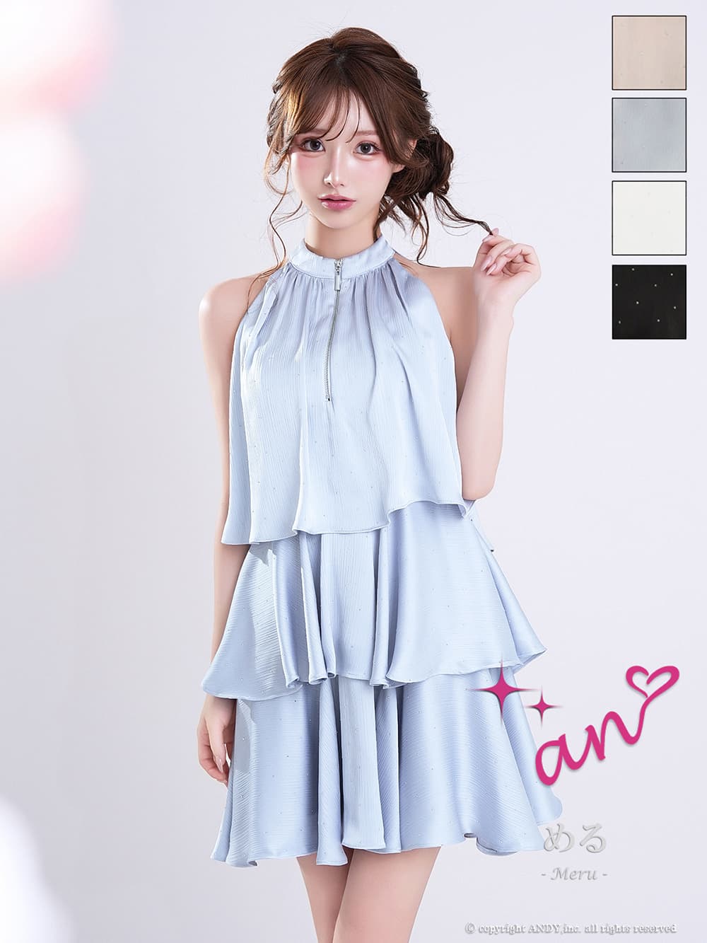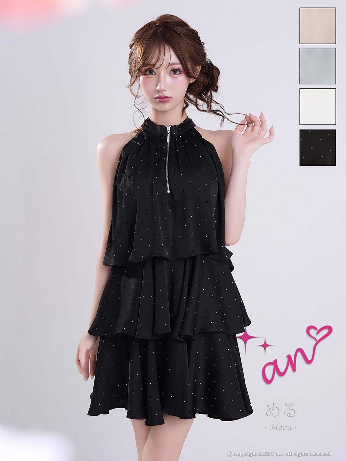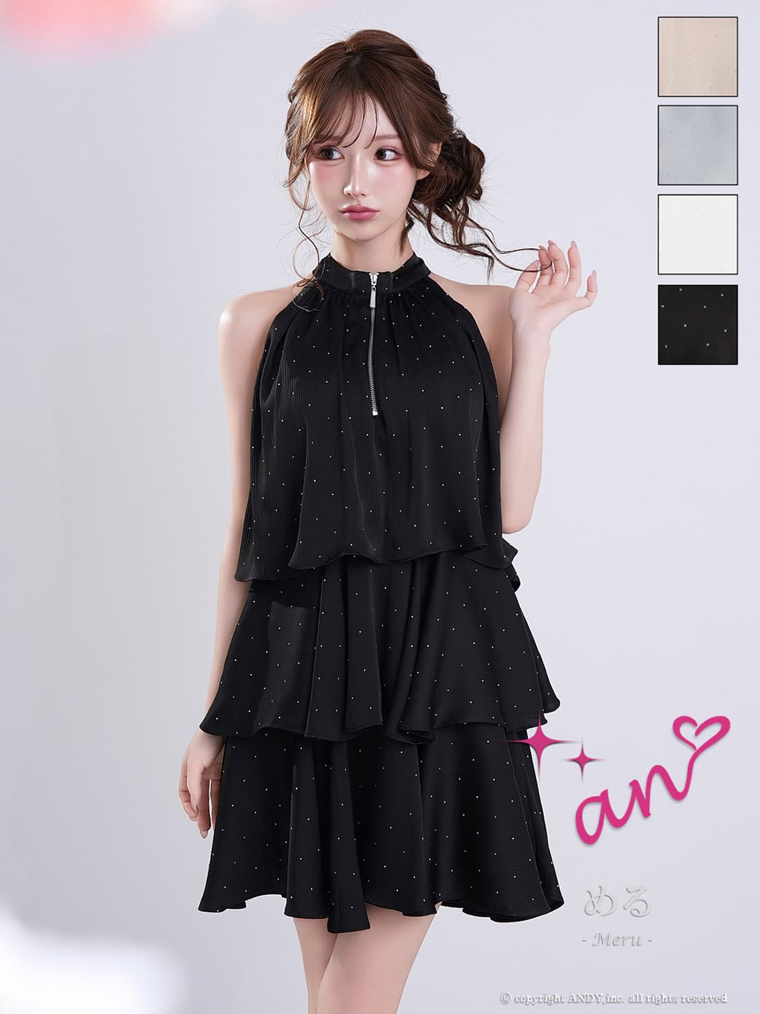 XSサイズあり【an/アン】ホルターネック/ プチハイネック/ バストジップ/ ストーン/ リボン/ Aライン/ ティアード/ フリル/ フレア/ ミニドレス/ キャバドレス[OF05] [AOC4100-B-2603]