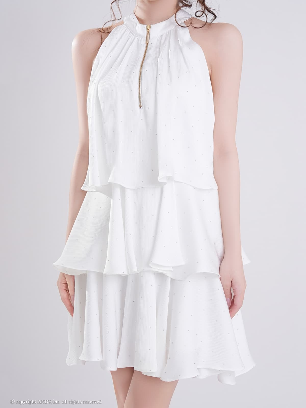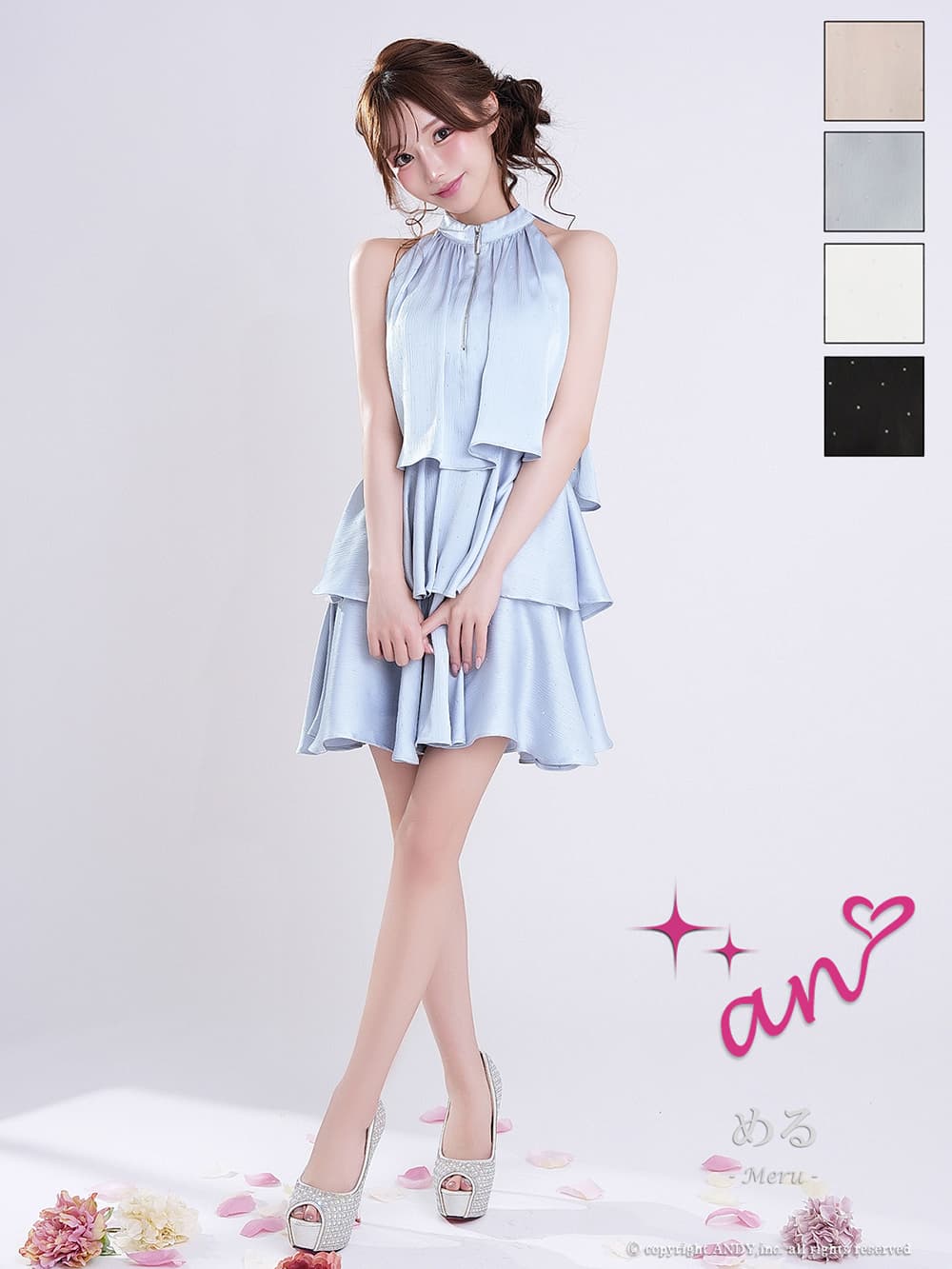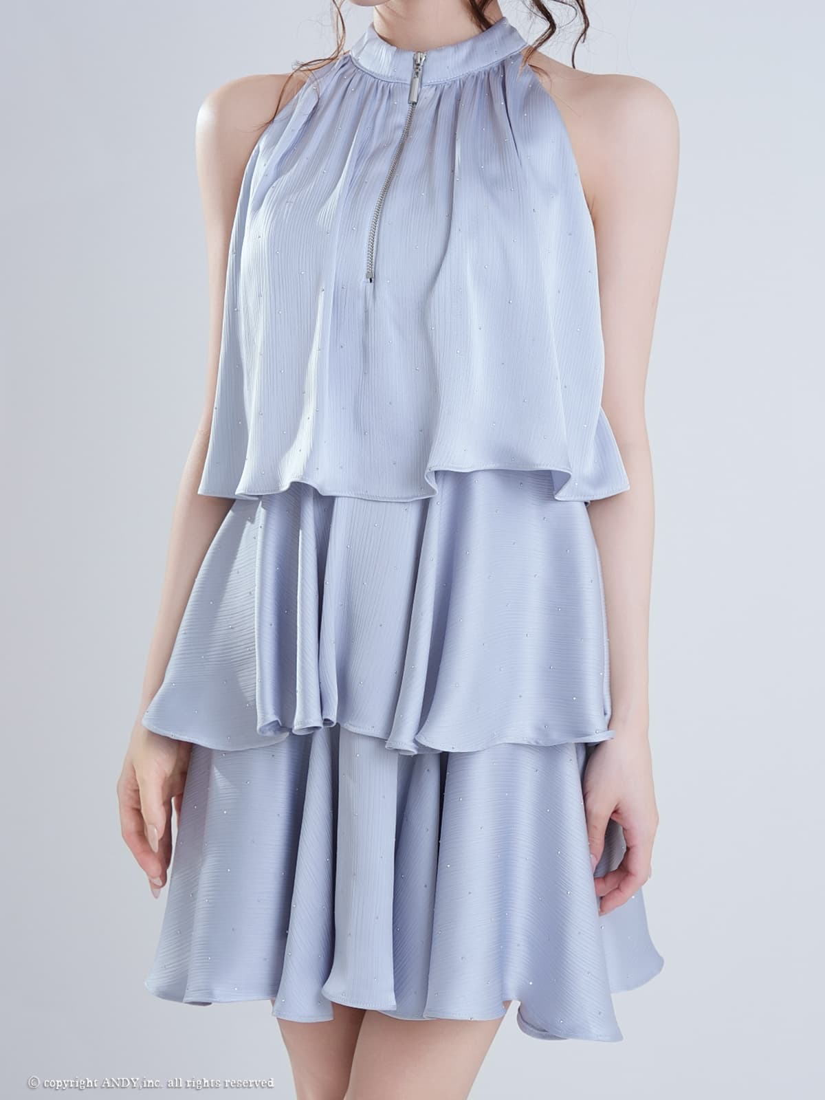 XSサイズあり【an/アン】ホルターネック/ プチハイネック/ バストジップ/ ストーン/ リボン/ Aライン/ ティアード/ フリル/ フレア/ ミニドレス/ キャバドレス[OF05] [AOC4100-B-2603]