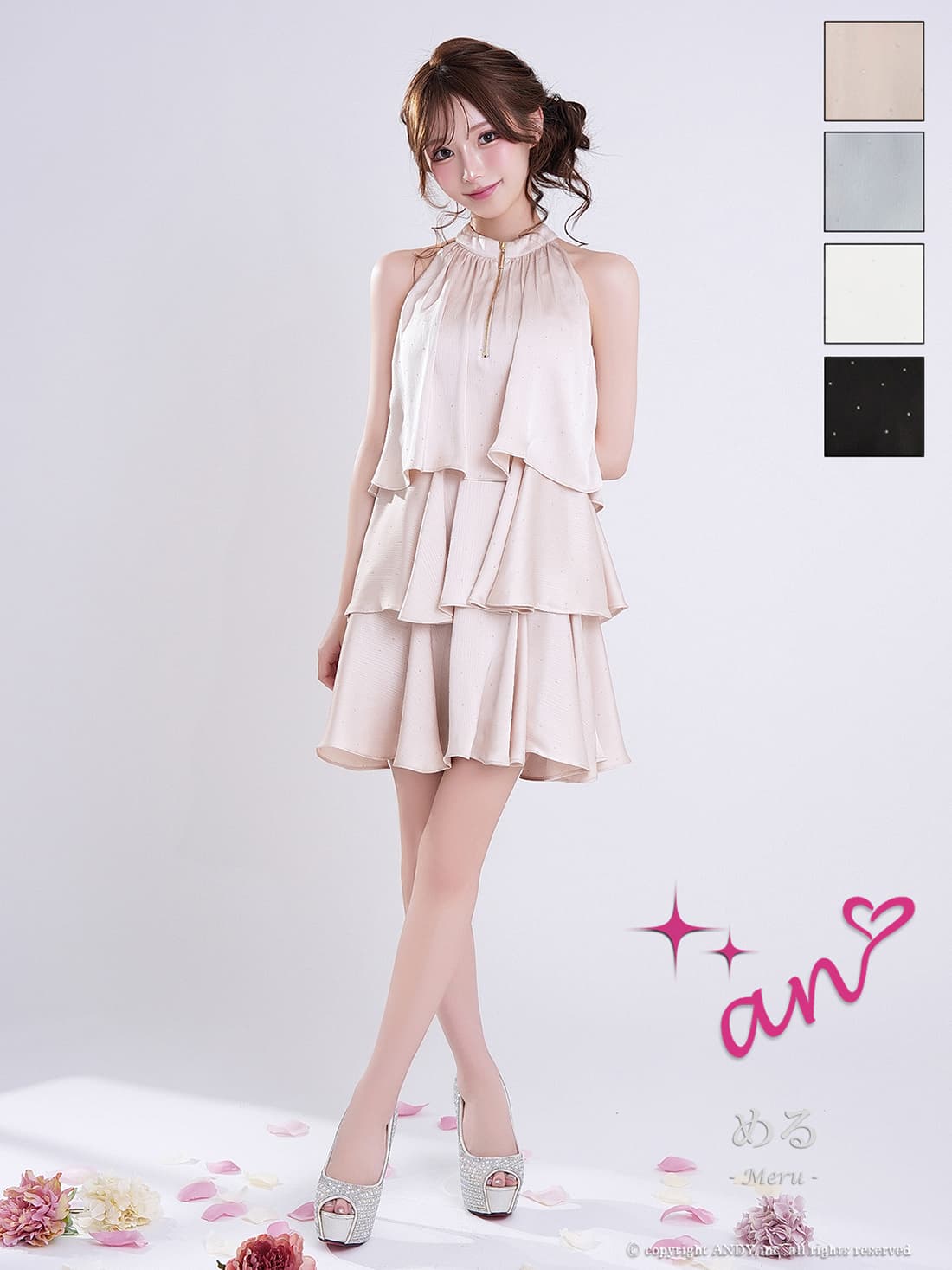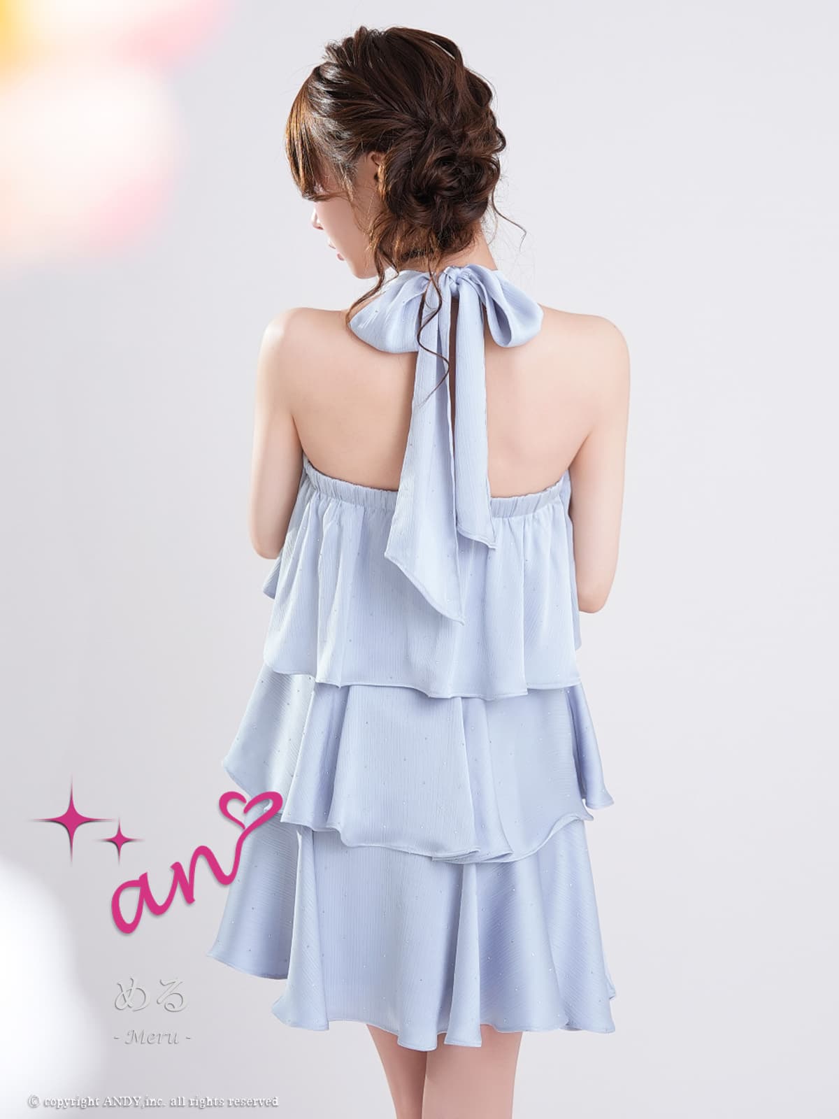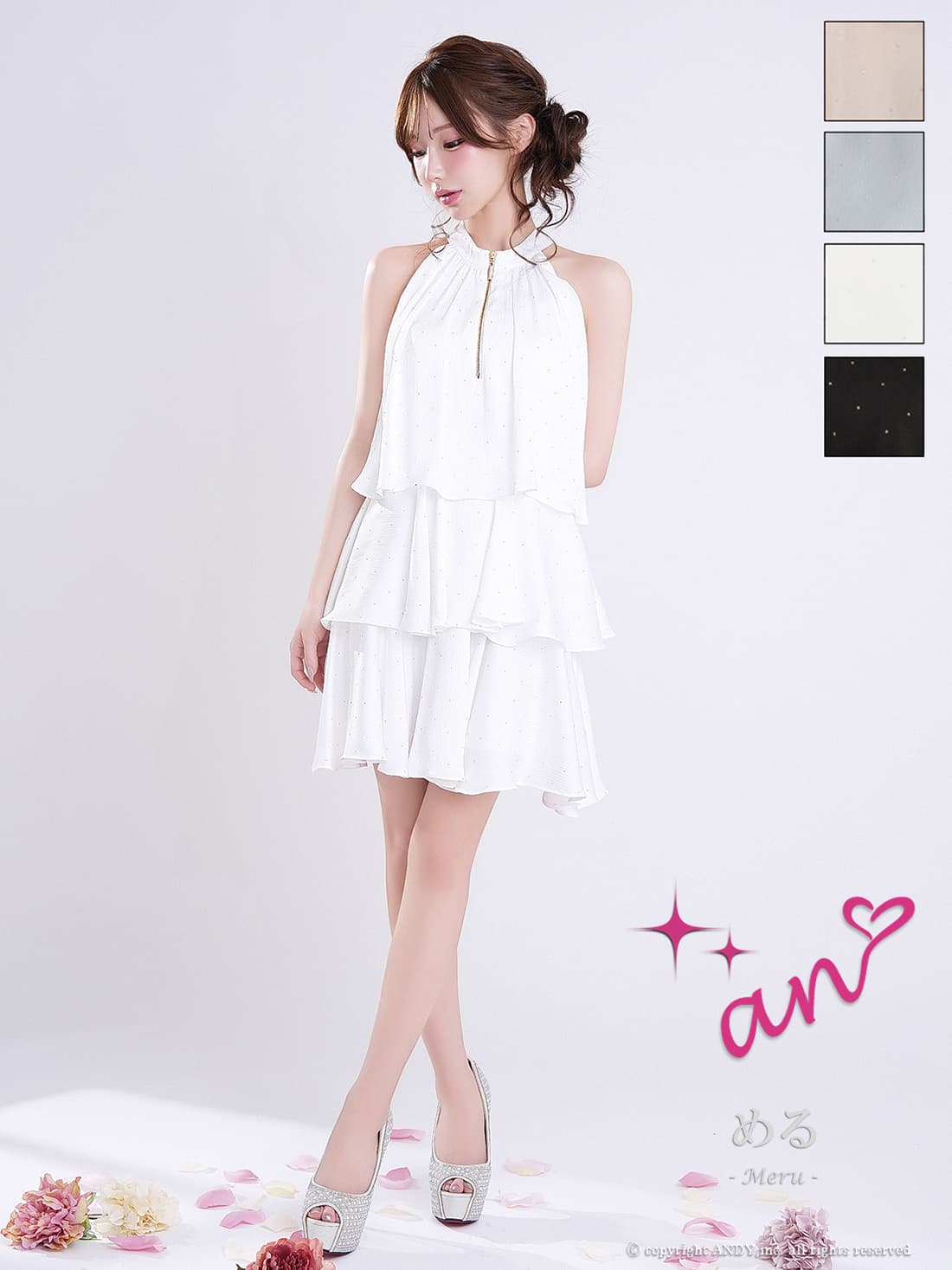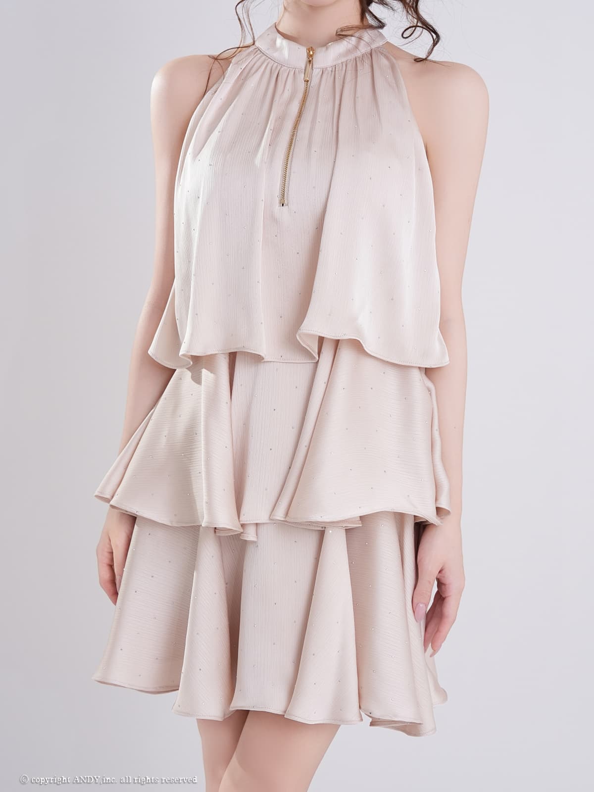 XSサイズあり【an/アン】ホルターネック/ プチハイネック/ バストジップ/ ストーン/ リボン/ Aライン/ ティアード/ フリル/ フレア/ ミニドレス/ キャバドレス[OF05] [AOC4100-B-2603]