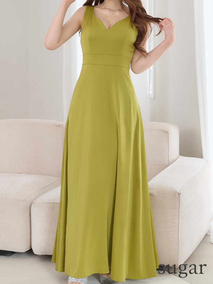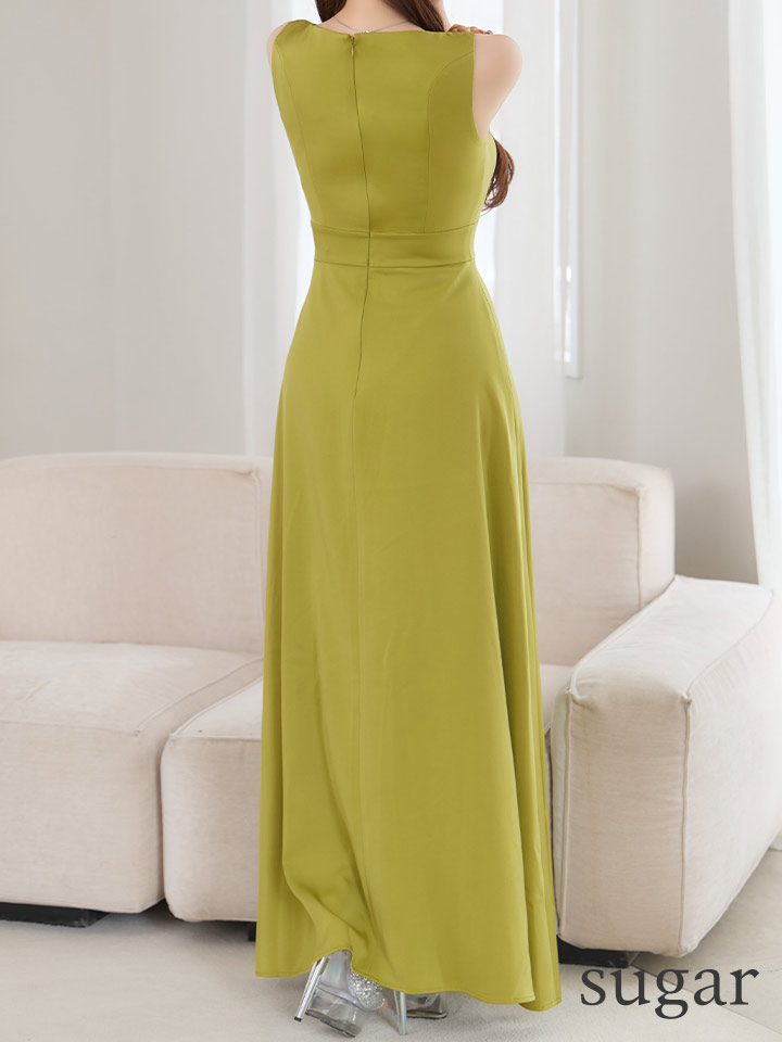 【VELIQUE/ヴェリーク】シンプル/ ワンカラー/ サテン/ 無地/ ノースリーブ/ Vネック/ フレア/ ワンピース/ ロングドレス/ キャバドレスlong【HC02】 [BYRS-241-TeeGR-S260317]