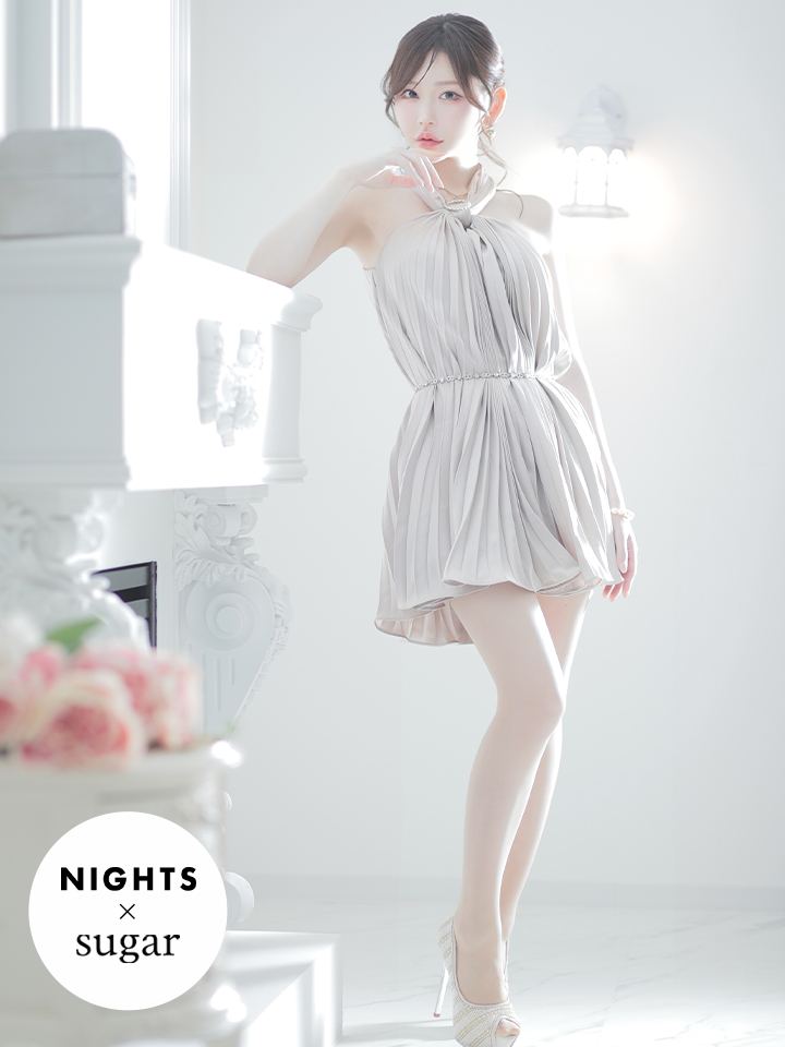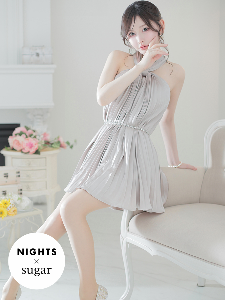 ビジューで留めたホルターネックが大人可愛いミニドレス♡