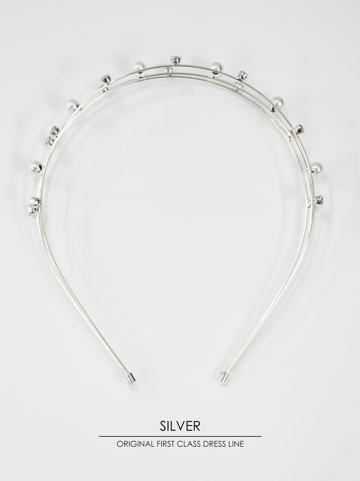 繊細なラインに映えるパールとストーンで大人の甘さをプラスしたカチューシャ。