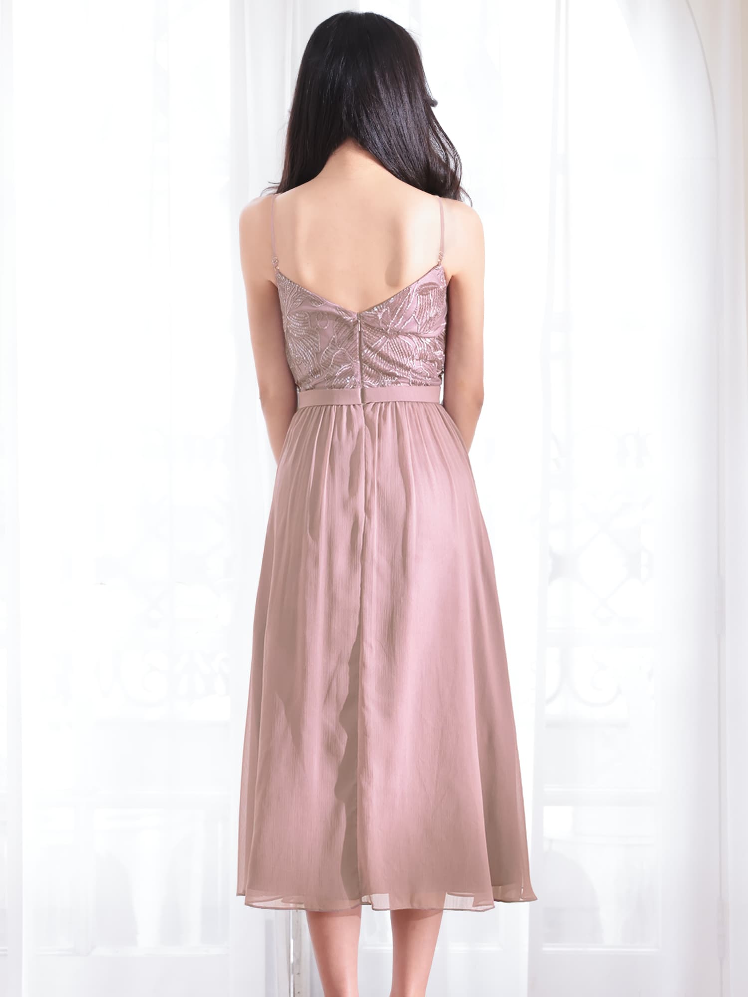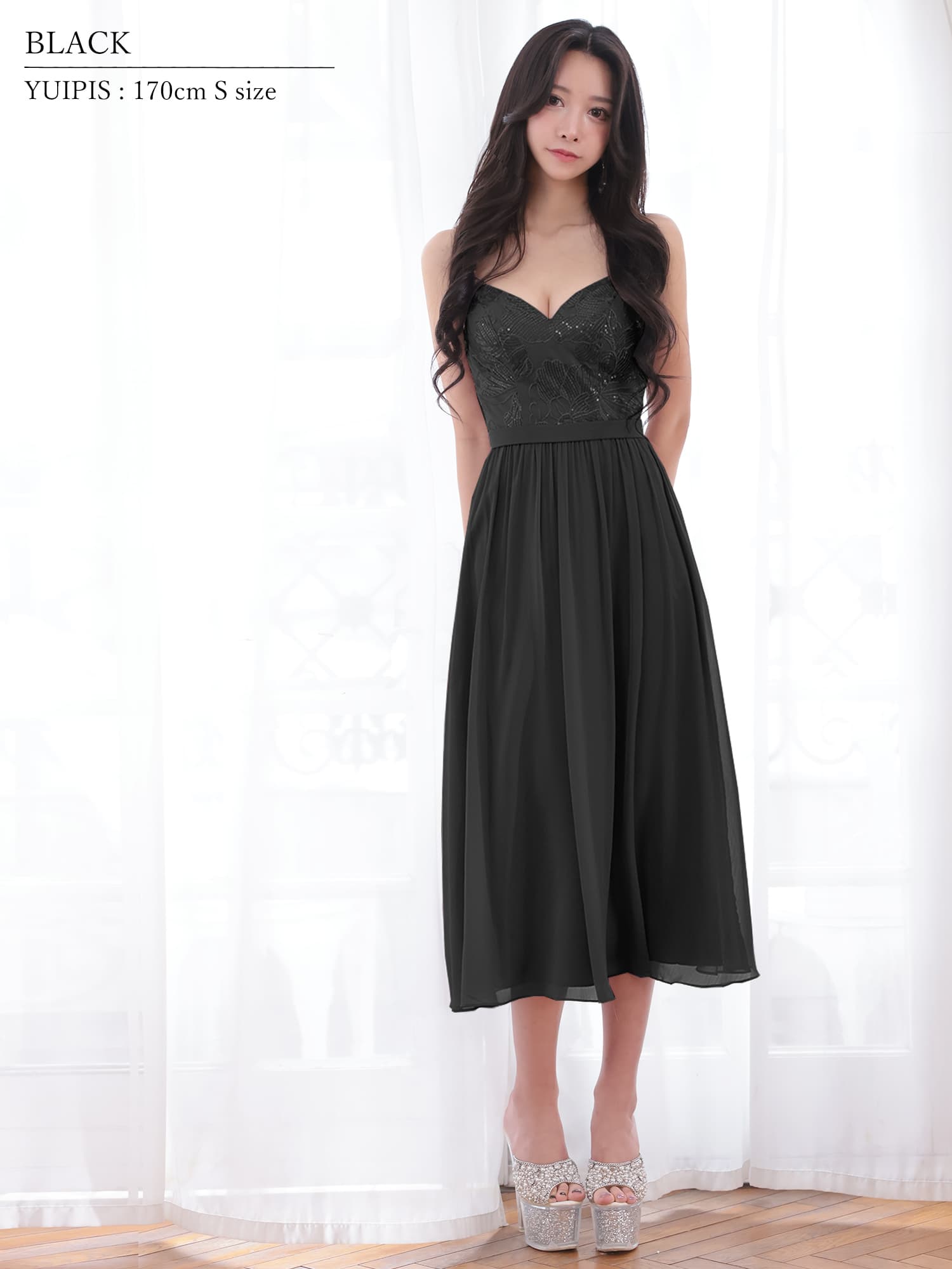 華奢なストラップデザインで抜け感をプラスし、女性らしいバランスに仕上げています。