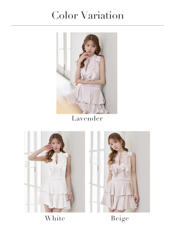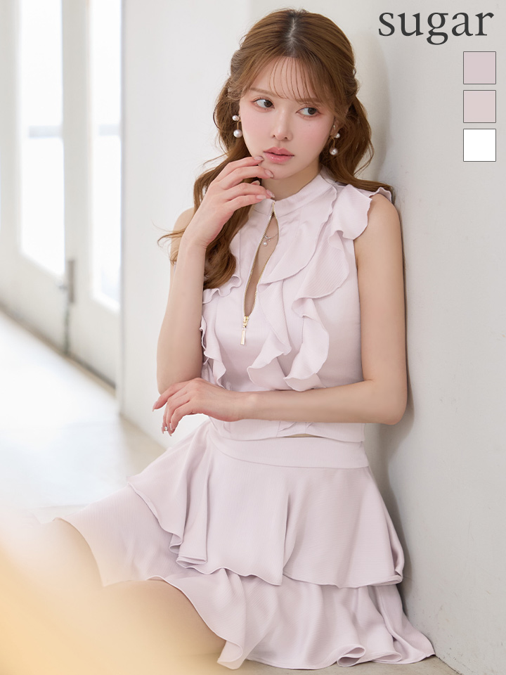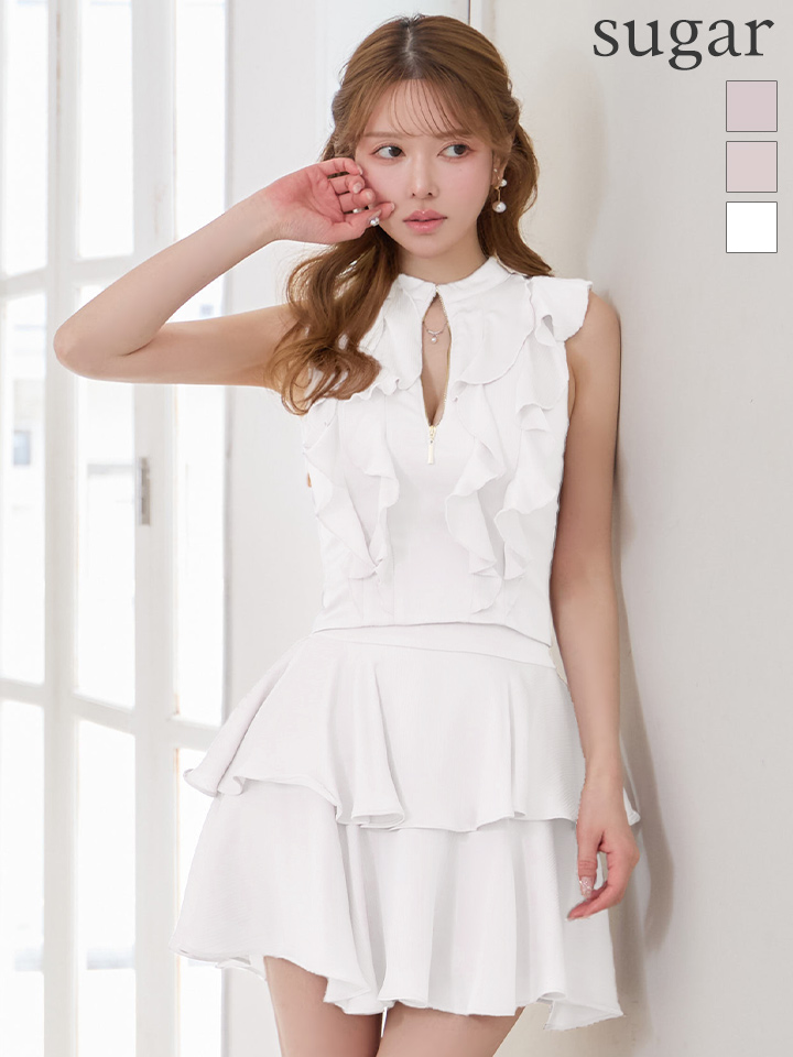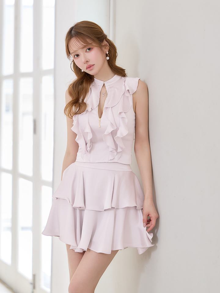 XSサイズあり【an /アン】 セットアップ/ ノースリーブ/ バストジップ/ ティアード/ ペタルフリル/ フレア/ ミニドレス/ キャバドレス[OF05] [AOC4088-LV-S260319]