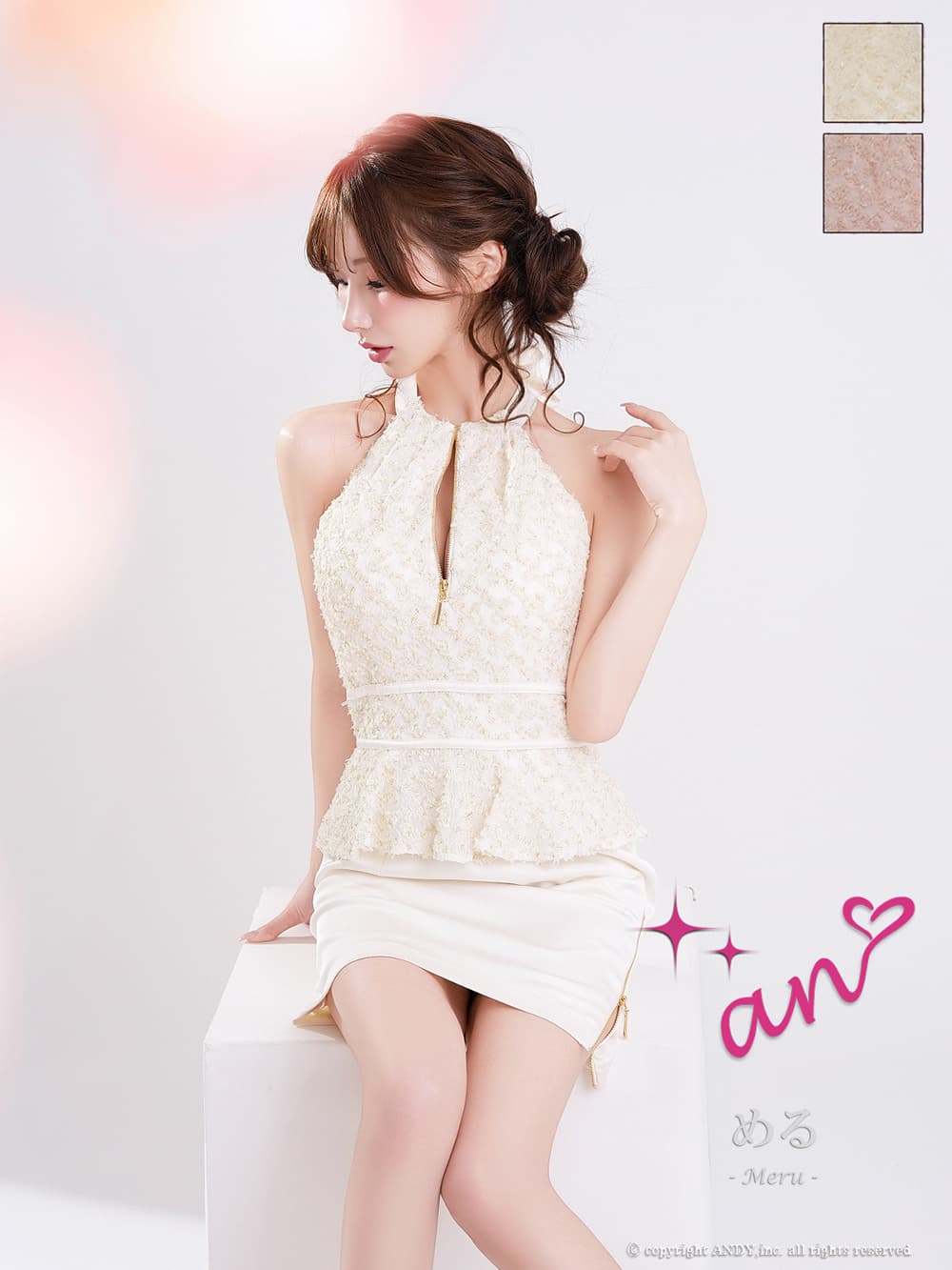 XSサイズあり【an/アン】ホルターネック/ プチハイネック/ バストジップ/ リボン/ Aライン/ ペプラム/ フリル/ タイト/ ミニドレス/ キャバドレス[OF05] [AOC4104-IV-2603]