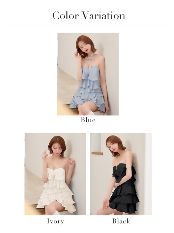XSサイズあり【an/アン】リボンチョーカー付き/ シフォン/ ティアード/ フリル/ メロウ/ バストジップ/ フレア/ Aライン/ ベア/ ミニドレス/ キャバドレス[OF05] [AOC4087-B-S260319]