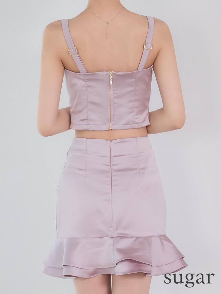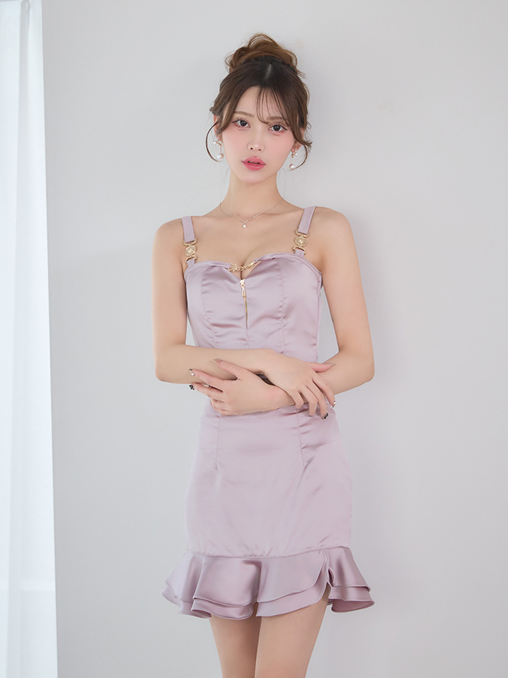 XSサイズあり【an/アン】ゴールドバックル/ バストジップ/ サテン/ フリル/ キャミソール/ タイト/ セットアップ/ ミニドレス/ キャバドレス[OF05] [AOC4049-W-S260323]