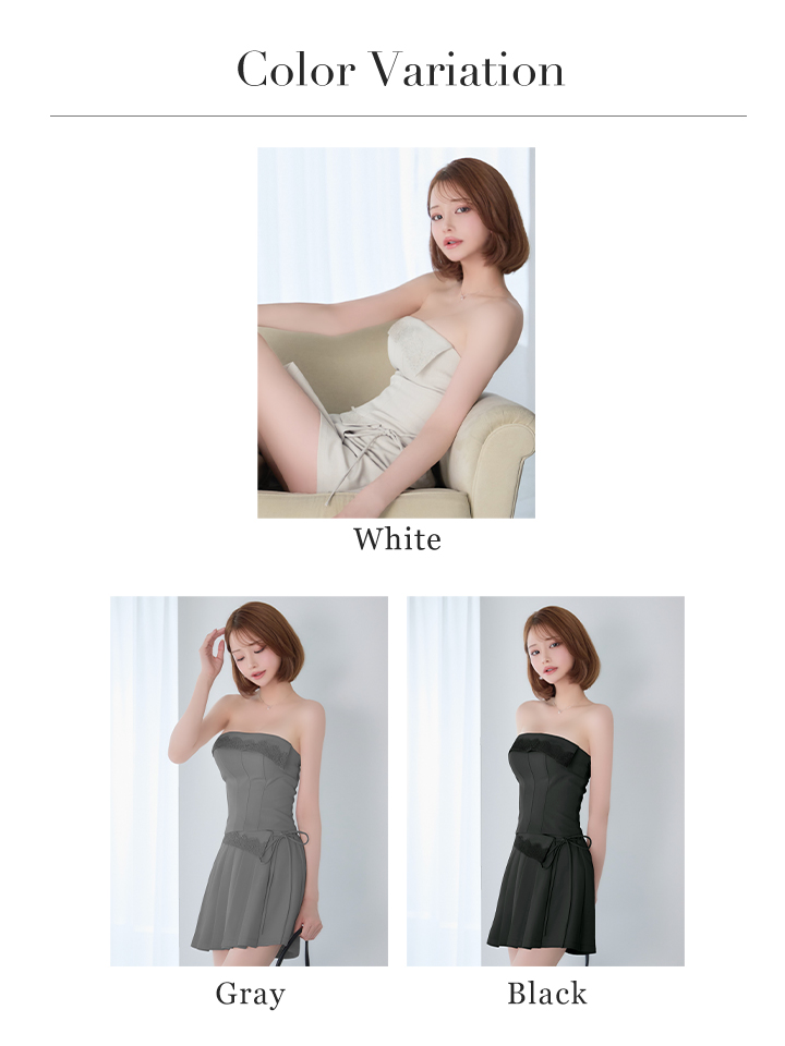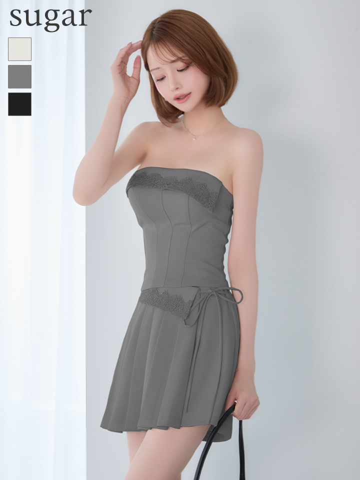 【予約商品/3月下旬-4月上旬発送予定】XSサイズあり【ANGEL R/エンジェルアール】ベアトップ/ レース/ リボン/ プリーツ/ セパレート/ フレア/ マイクロミニドレス/ キャバドレス[OF2] [AR26313-GYGE-S260323]