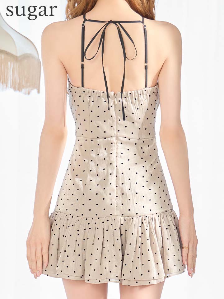 #キャバクラ #キャバ嬢 #キャバクラドレス #リボン #ドット #ホルターネック #サテン #ミニドレス