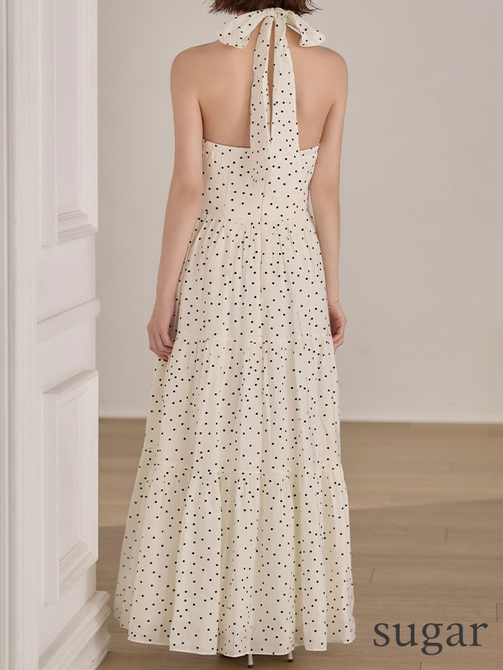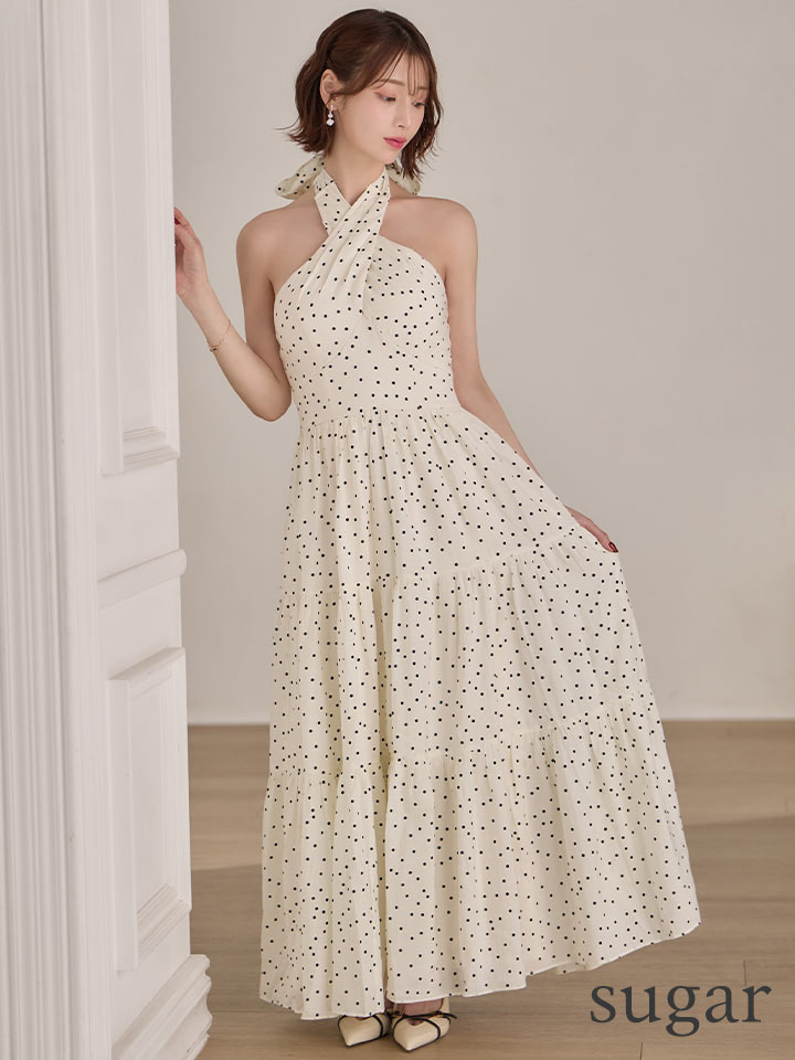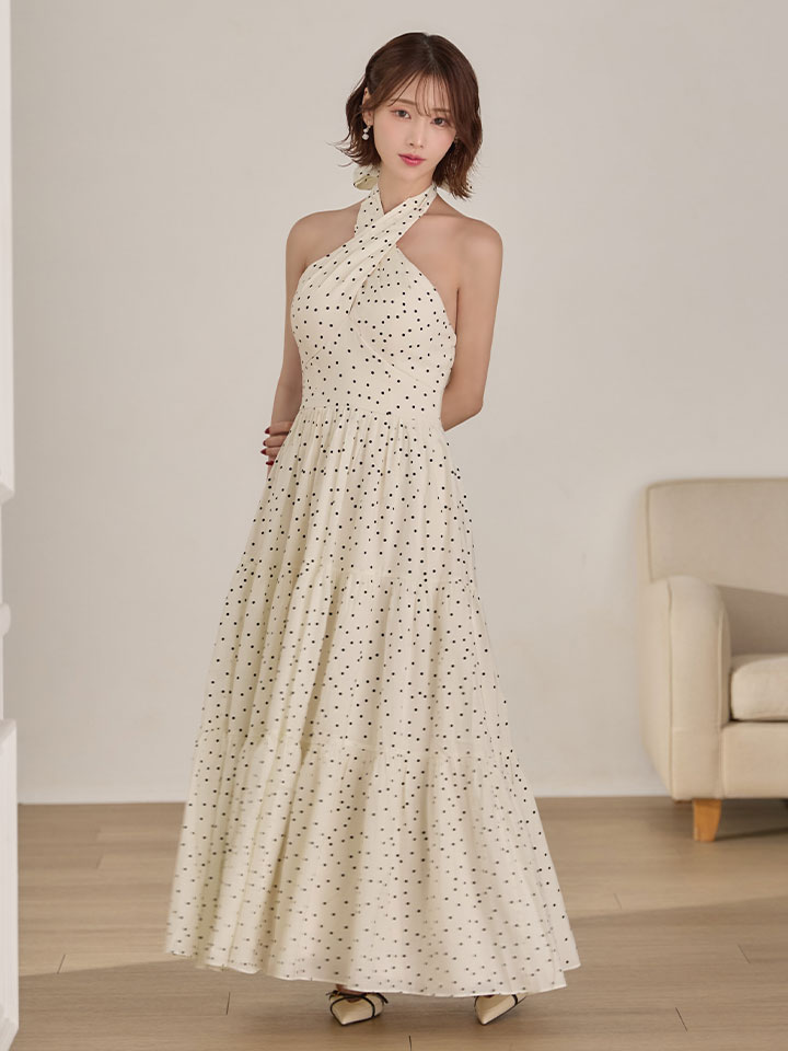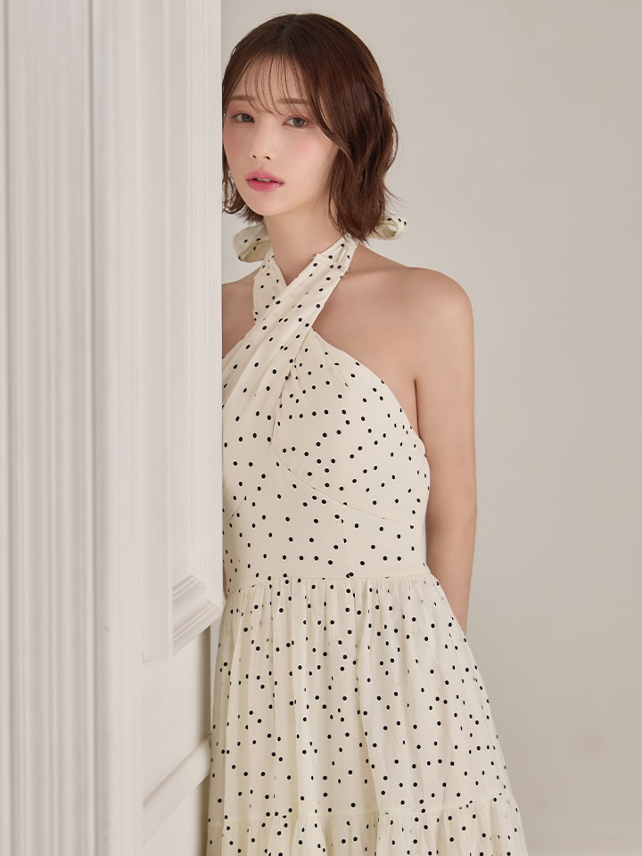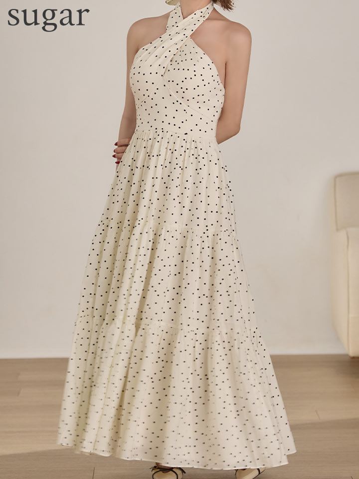 【天海りこ/関西コレクション着用】Lサイズあり【DEA./ディア】クロスホルター/ ドット/ フレア/ ワンピース/ ミディアムドレス/ キャバドレス[OF08] [DE4646-IV-S260410CC]