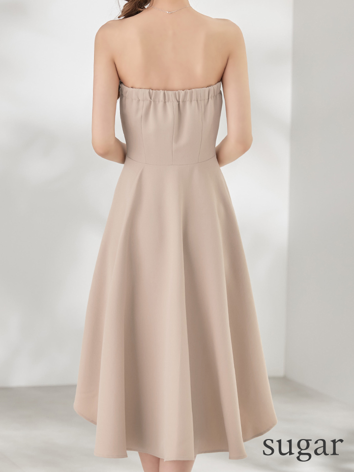 ベアトップデザインでデコルテ周りをすっきりと魅せ、アクセ映えも◎