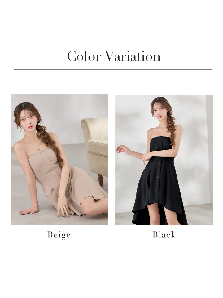 XSサイズあり【ANDY/アンディ】フロントボタン/ ワンカラー/ ベア/ テールカット/ Aライン/ ミモレ丈/ フレア/ ワンピース/ ミディアムドレス/ キャバドレス[OF05] [ON3057-B-S260324]