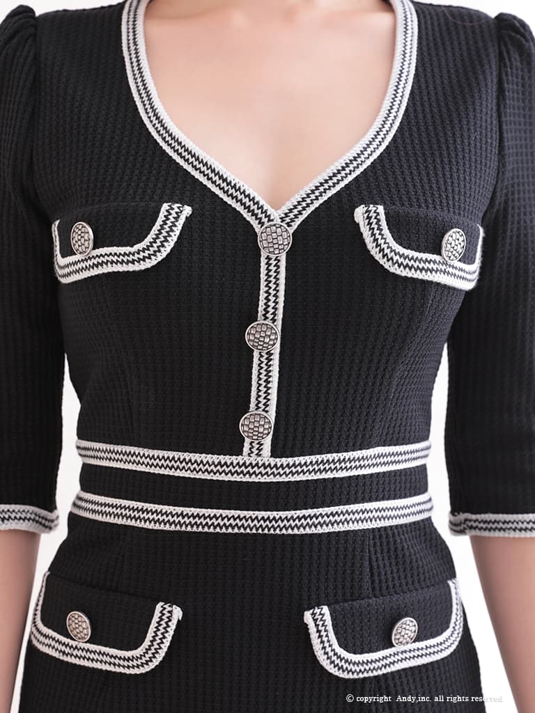 【ANDY/アンディ】モノトーン/ 七分袖/ 袖あり/ パイピング/ ポケットデザイン/ ボタン/ Aライン/ ミニドレス/ キャバドレス[OF05] [ON3074-B-2603]