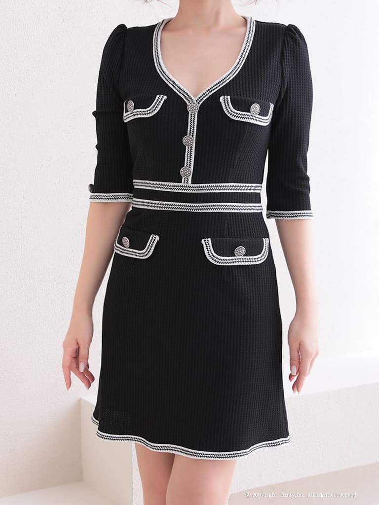 【ANDY/アンディ】フロントボタンとパイピングが印象的なミニドレス