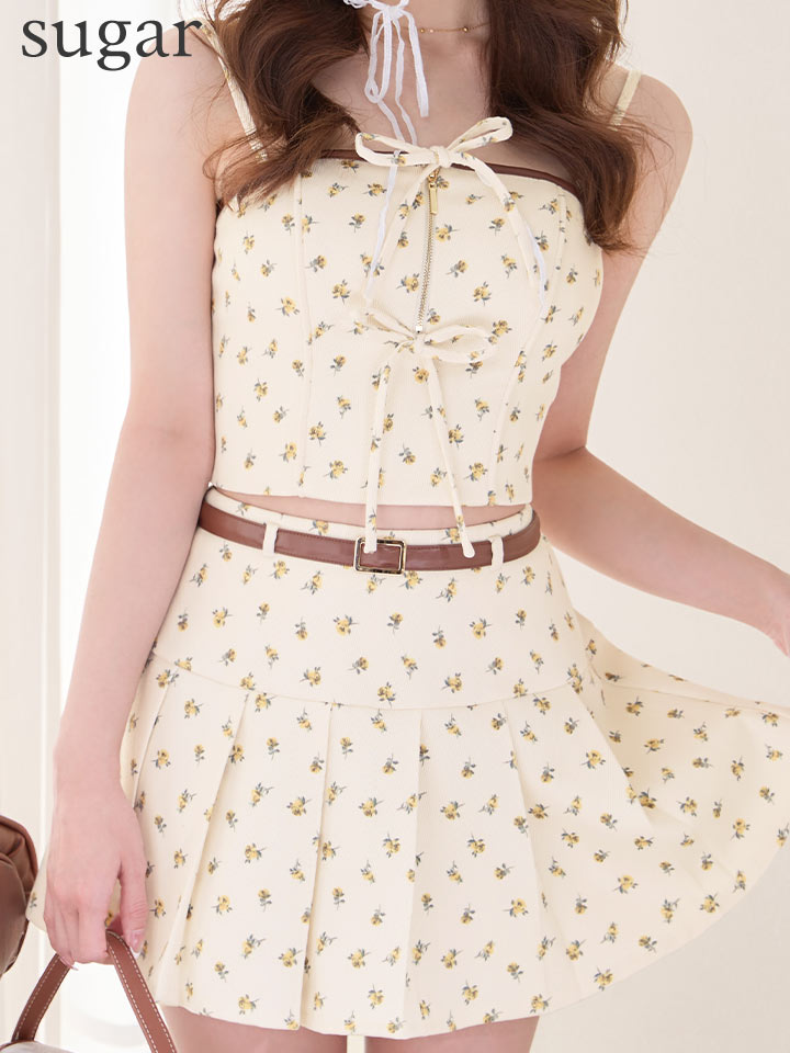 【飛鳥/関西コレクション着用】XSサイズあり【ROBE de FLEURS/ローブドフルール】小花柄/ レザーパイピング/ プリーツ/ セットアップ/ フレア/ ミニドレス/ キャバドレス[OF08]【一部予約商品/8月上旬発送予定】 [FM4355-Y-S260410CC]