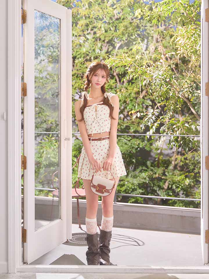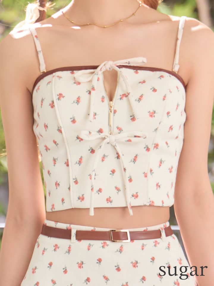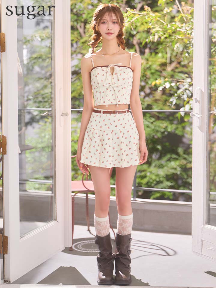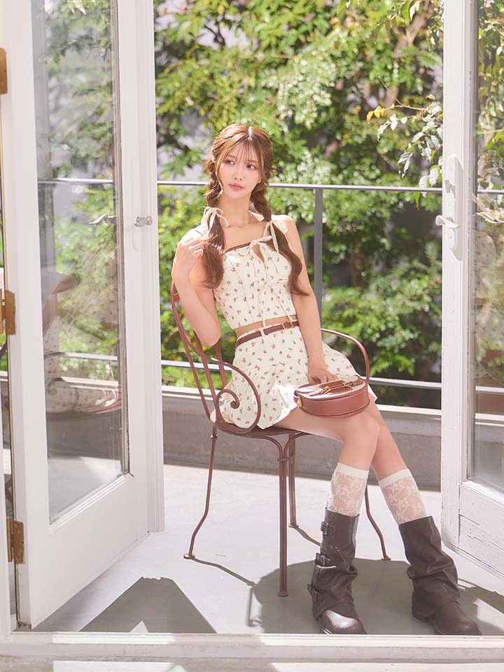 【さんご/関西コレクション着用】XSサイズあり【ROBE de FLEURS/ローブドフルール】小花柄/ レザーパイピング/ プリーツ/ セットアップ/ フレア/ ミニドレス/ キャバドレス[OF08]【一部予約商品/8月上旬発送予定】 [FM4355-P-S260410CC]
