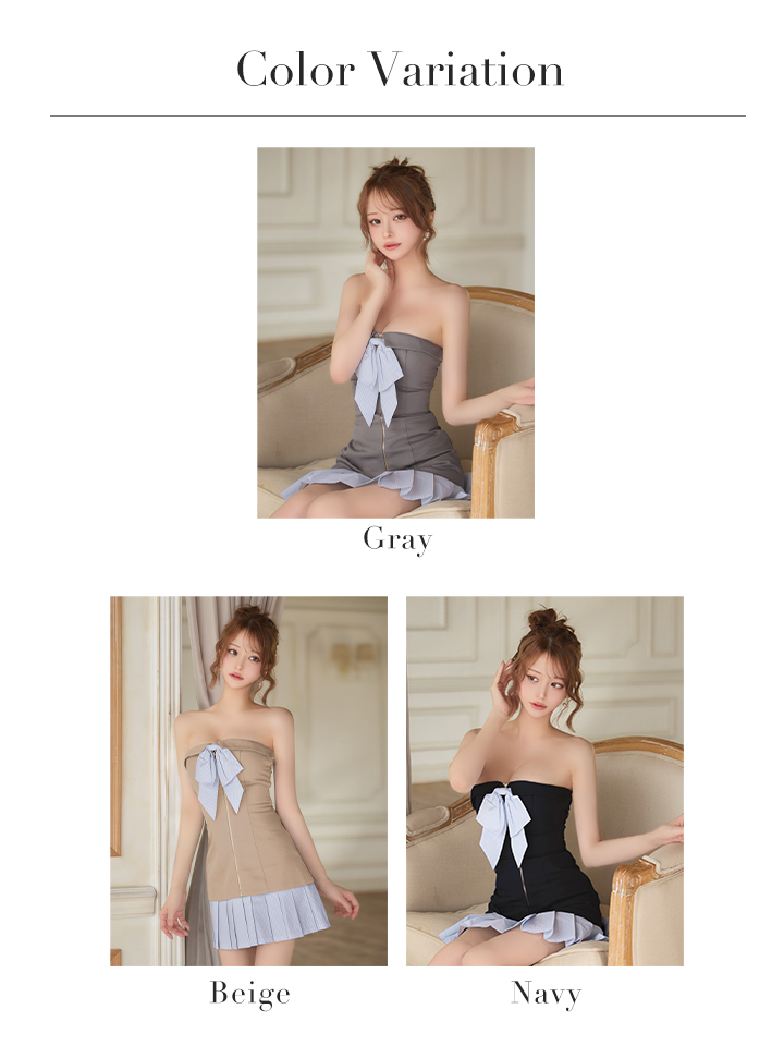 #キャバクラ #キャバ嬢 #キャバクラドレス #リボン #ベアトップ #プリーツ #バイカラー #ミニドレス