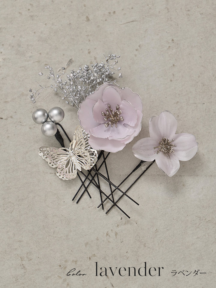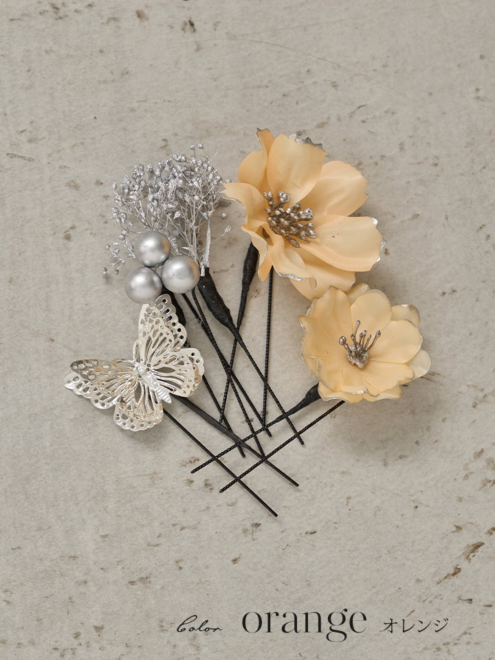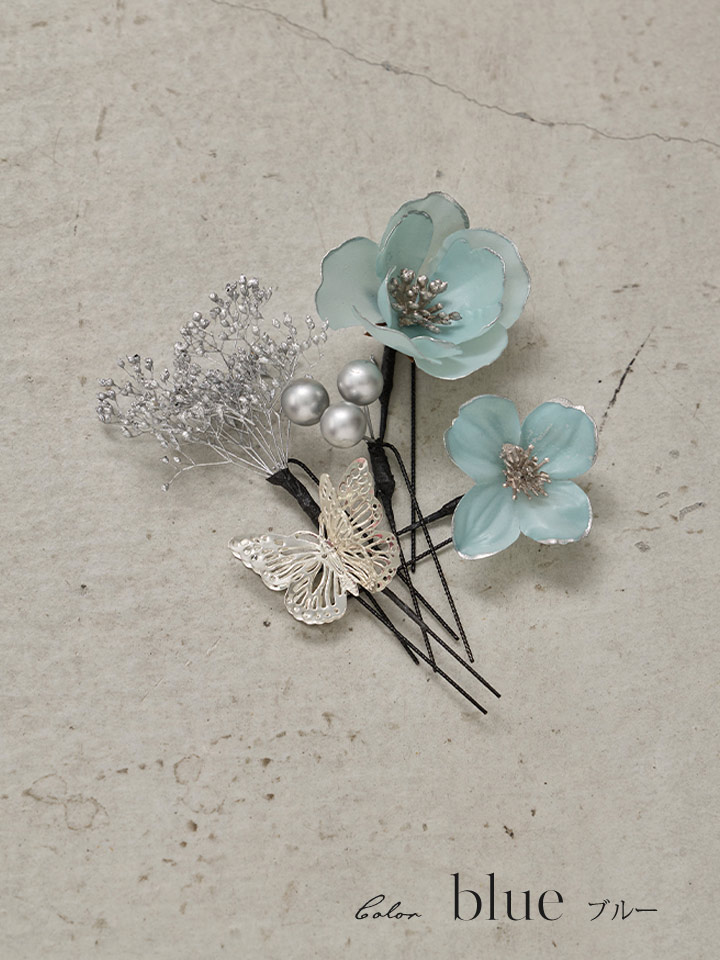 【浴衣小物】蝶が舞う小花コサージュセット【2カラー】 [YA-1102-kn]