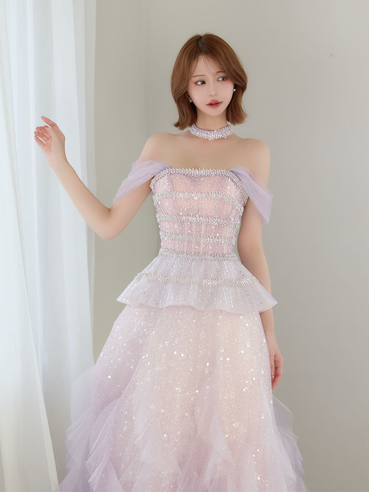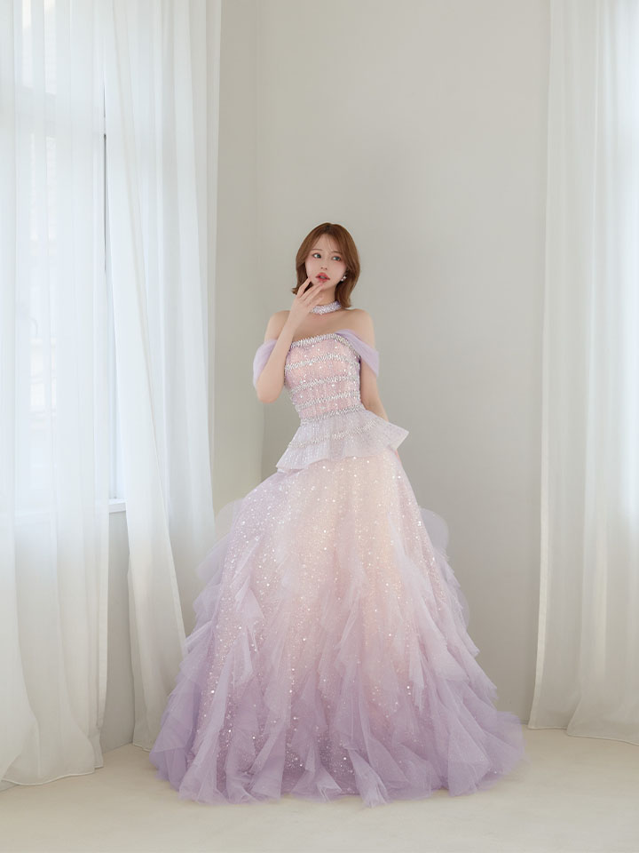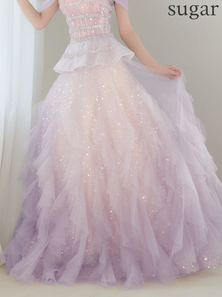 チュールからもラメがのぞく、フェアリーでロマンティックなプリンセスロングドレス♡