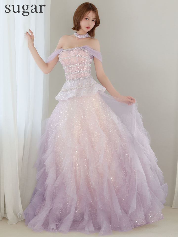 【couture an/クチュールアン】チョーカー付/ チュール/ ラメ/ スパンコール/ シアー/ フレア/ プリンセス/ フリル/ ビジュー/ カラードレス/ ロングドレス/ キャバドレス long[OF05] [AOC-WD-061-P-S260327]