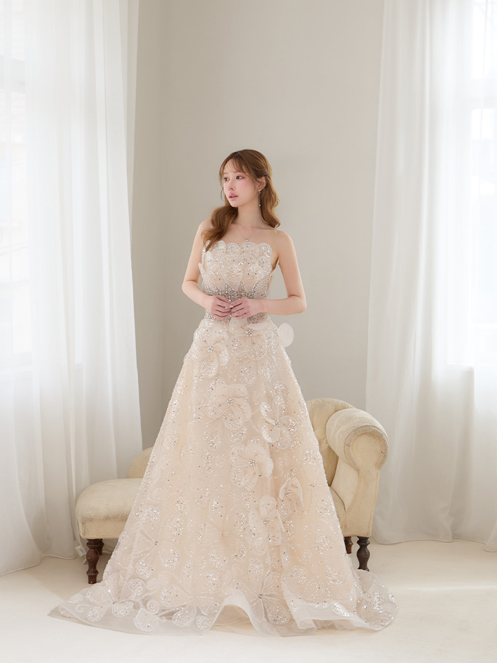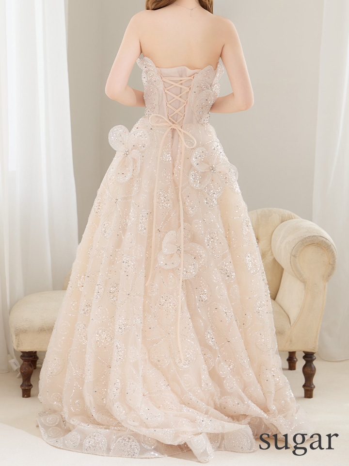 たくさんの立体フラワーが乙女心くすぐるプリンセスロングドレス♡