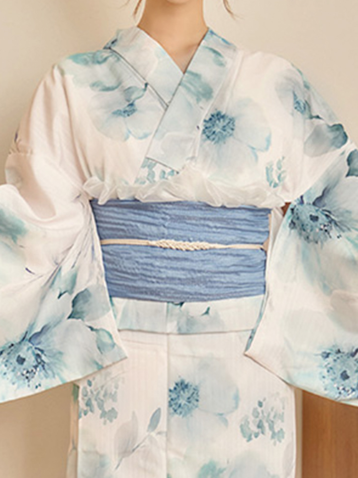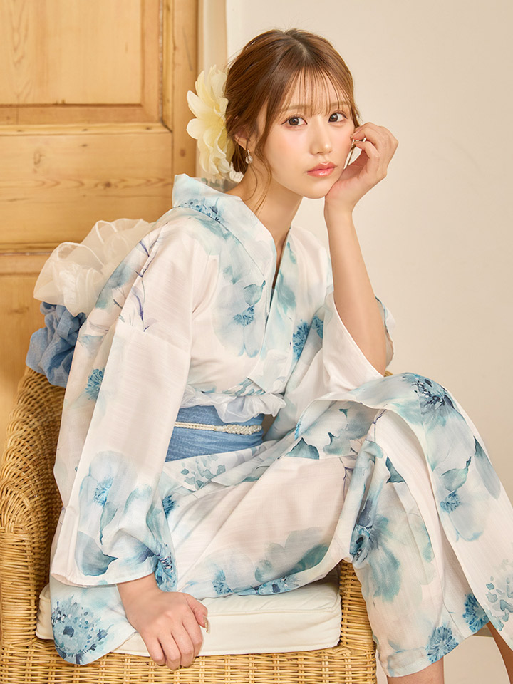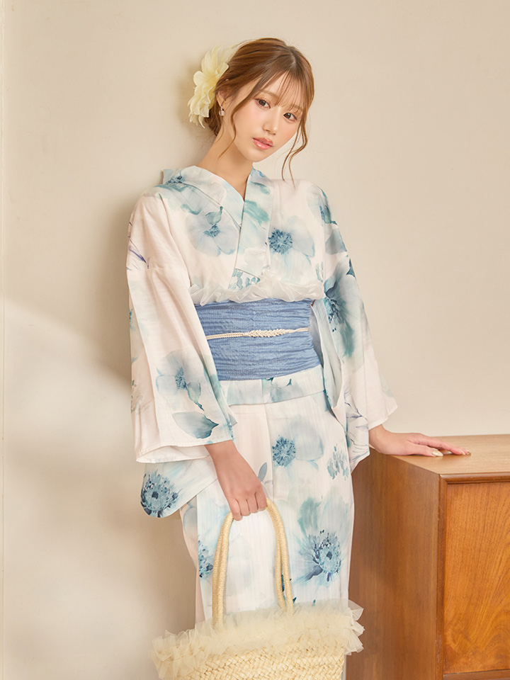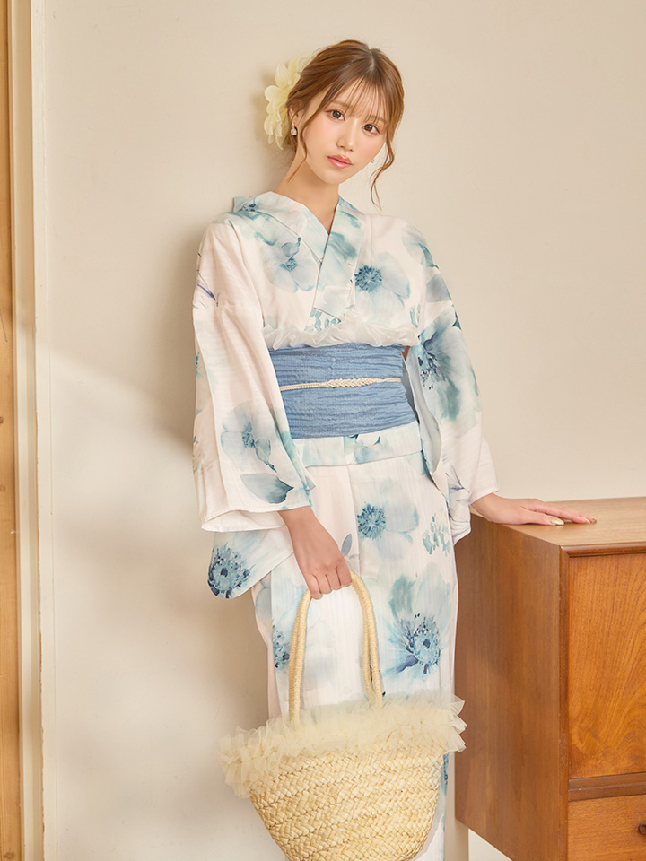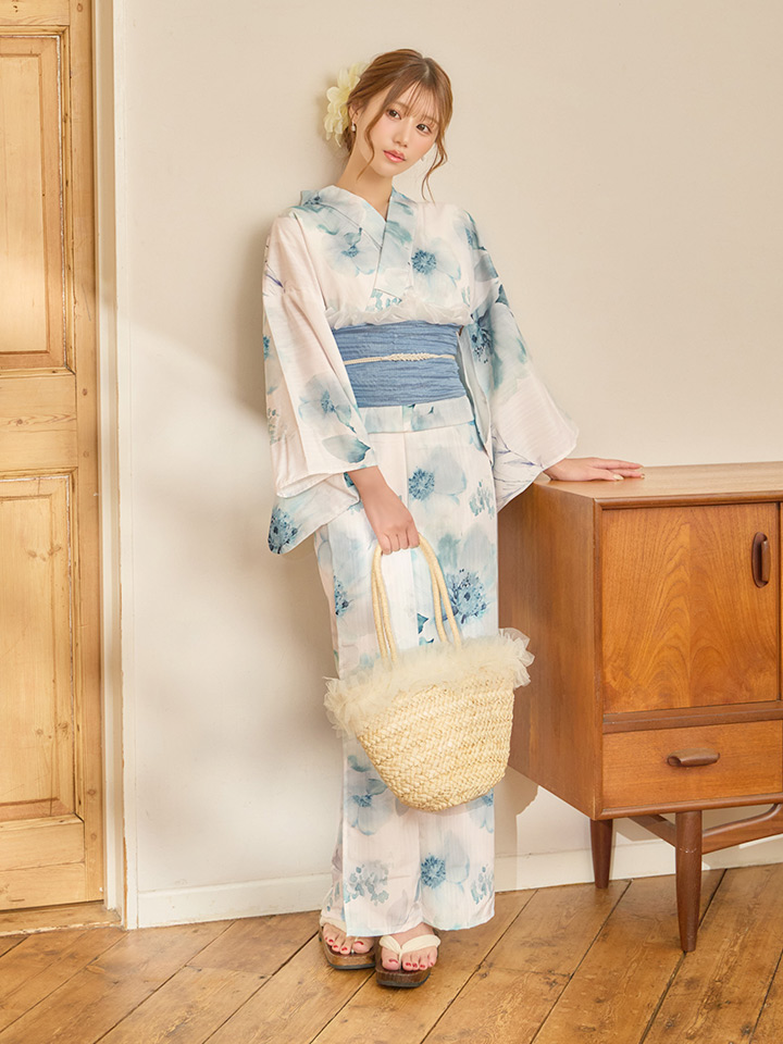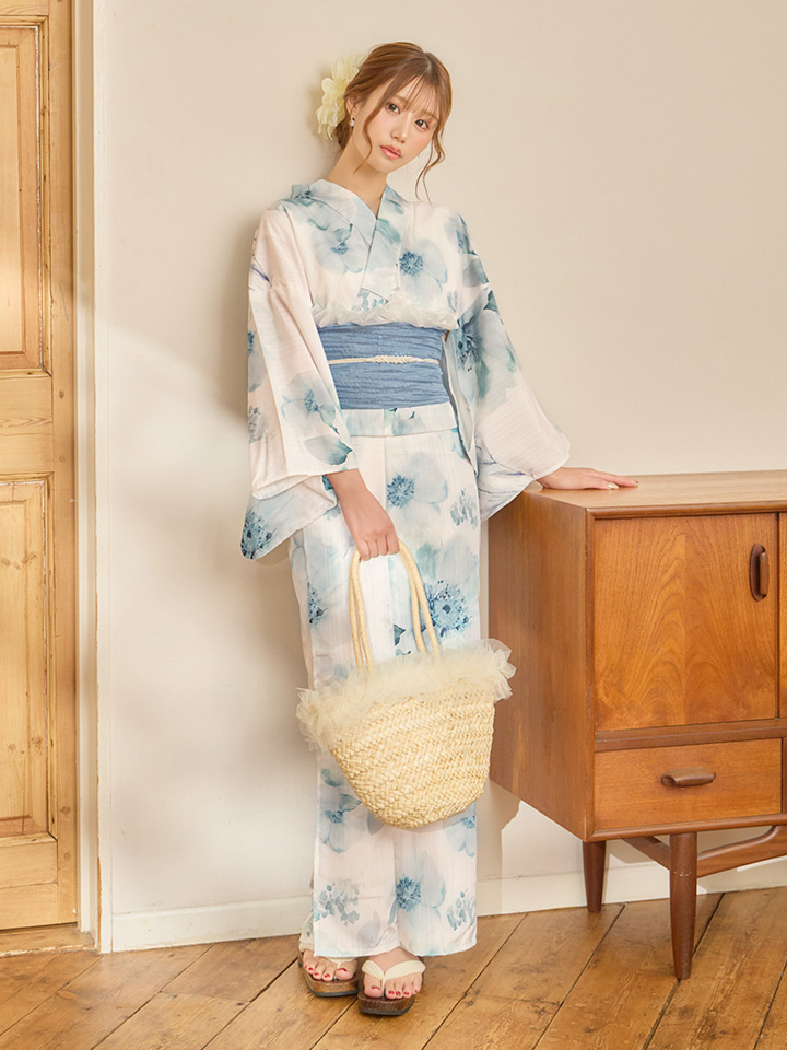 【即日発送】ブルーグレイニュアンスフラワー浴衣【浴衣3点セット】[OF04] [Y-9111-nz-dzh-BL-F-260331CC]