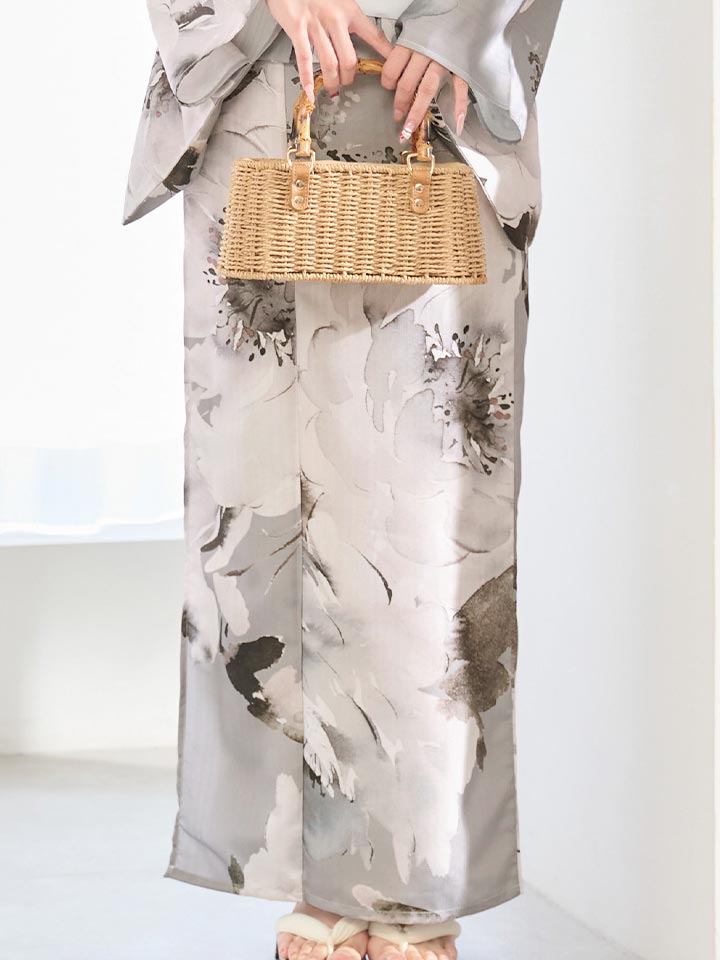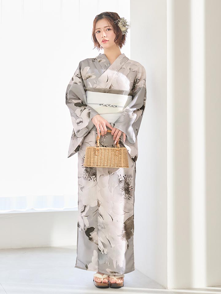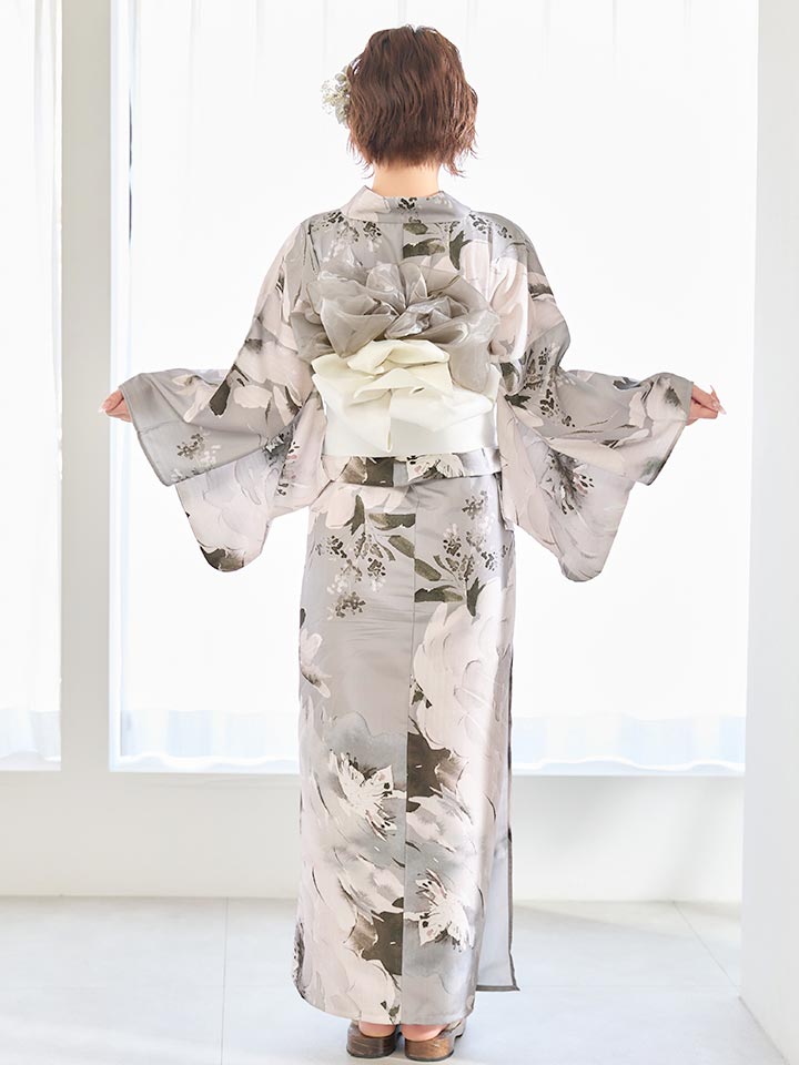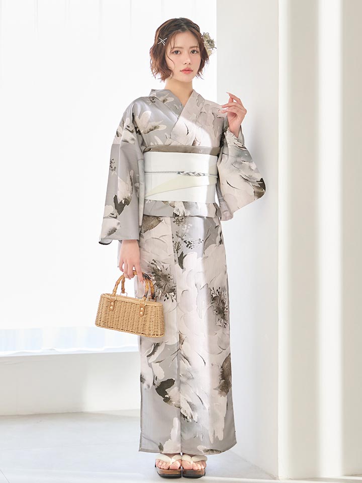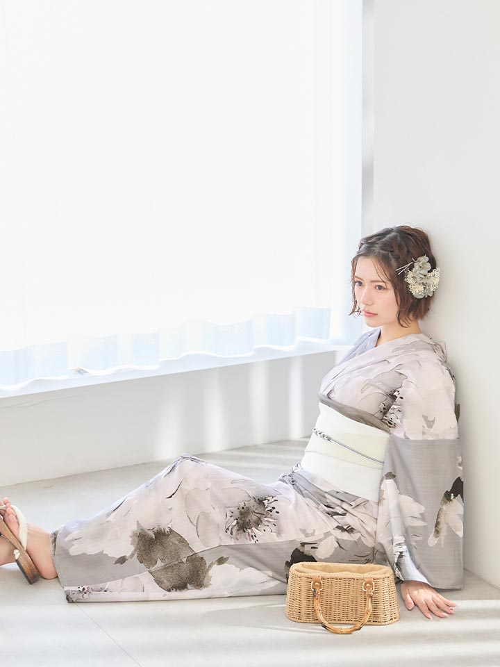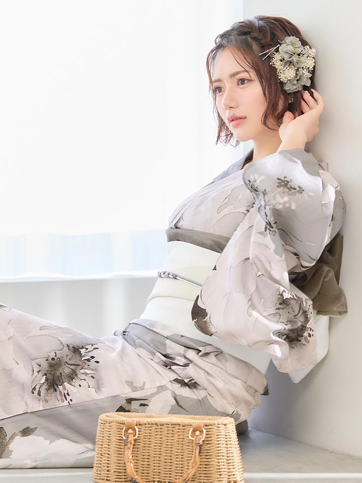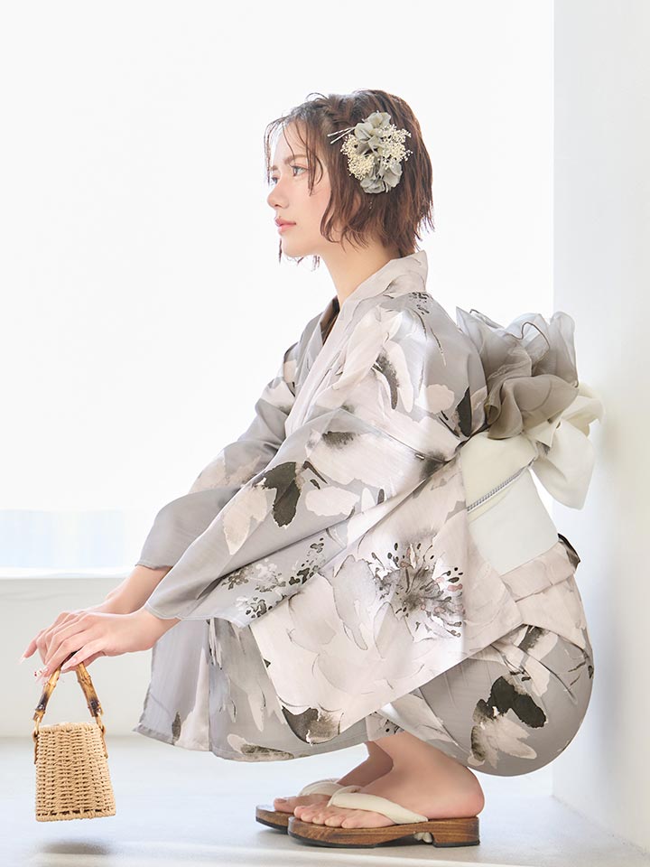 グレー基調の花柄が洗練ムードな大人浴衣