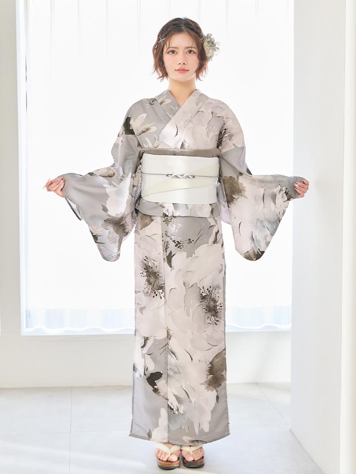 送料無料!グレイッシュフラワー浴衣【浴衣3点セット 浴衣/帯/下駄】[OF04]【予約 / 4月上旬発送予定】 [Y-9362-nz-dzm-GY-F-260331CC]