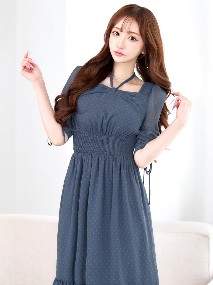 さりげないドットデザインが可憐な印象を与えるミディアムドレス♡