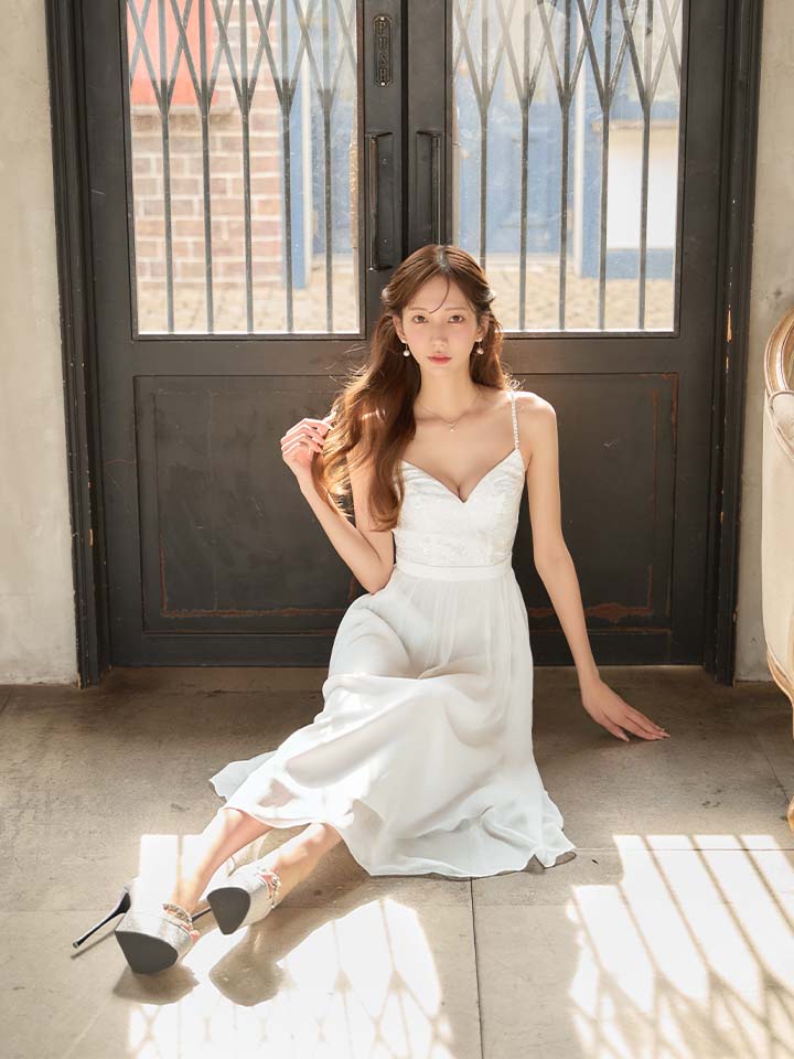 【予約商品/4月上旬-4月中旬発送予定】【ANGEL R/エンジェルアール】アッパーフラワーデザイン/ ウエストマーク/ ビジュー/ シフォン/ フレア/ ワンピース/ ミディアムドレス/ キャバドレス long[OF2] [AR26214-W-S260330]