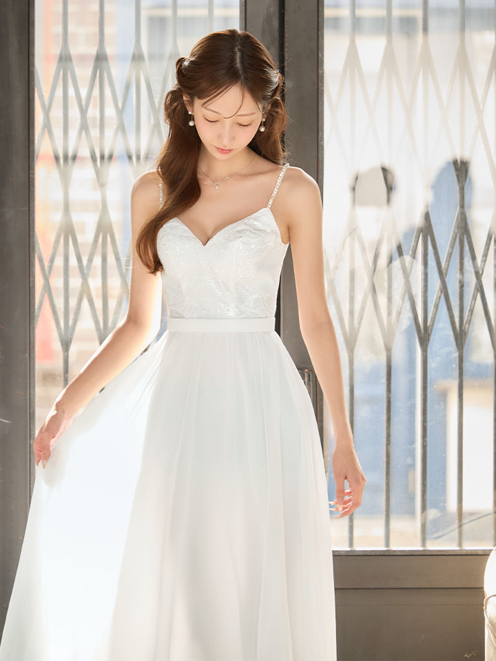 華奢なストラップデザインで抜け感をプラスし、女性らしいバランスに仕上げています。